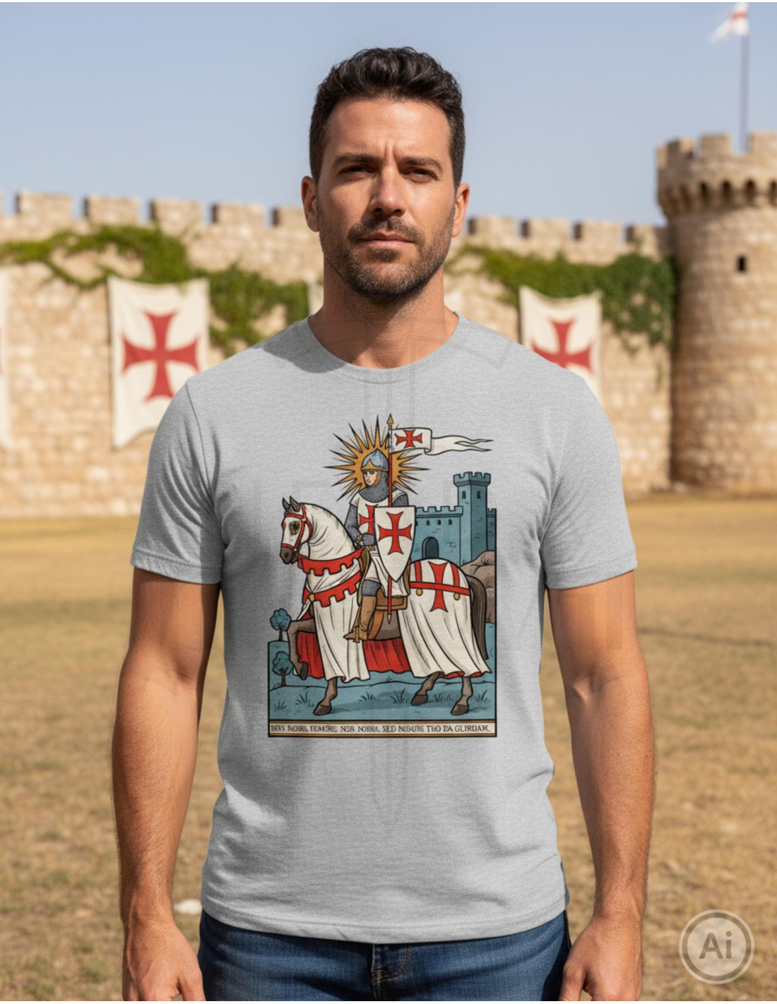 Klaar om het van jou te maken? Het kopen van de Grijze gemêleerde heren Templier-thema T-shirt is eenvoudig, voeg toe aan je winkelwagen en verzeker jezelf van een origineel cadeau dat lang meegaat.