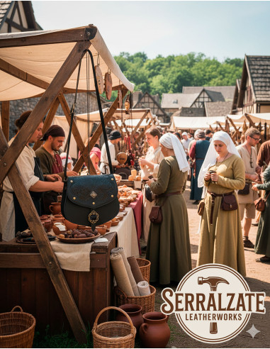 Middeleeuwse leren tas model Escudero, zwarte kleur