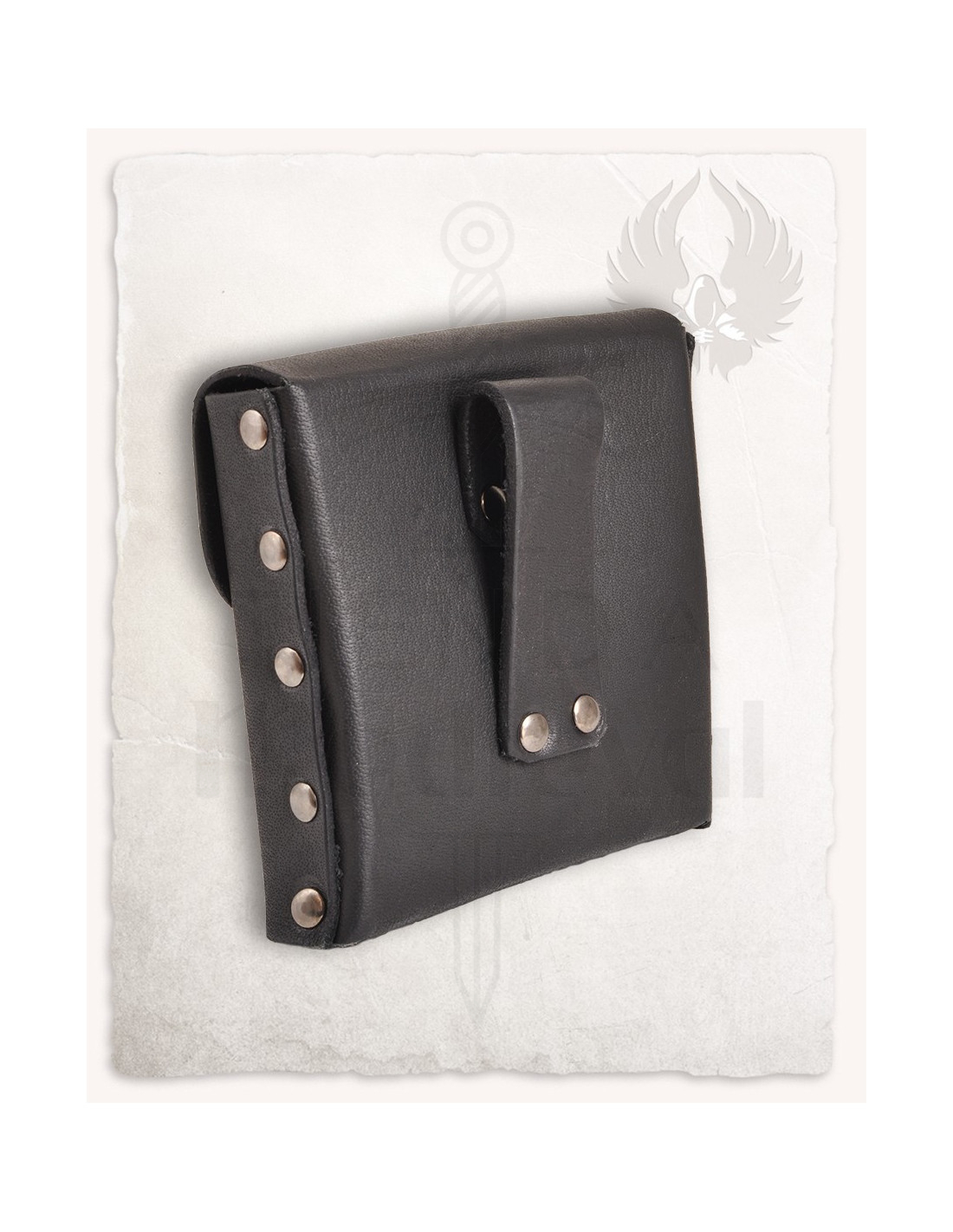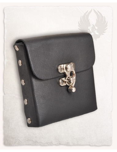 Het leren materiaal, gecombineerd met details in zilverkleurig staal zoals de sluiting en de studs, zorgt niet alleen voor stijl, maar ook voor weerstand bij regelmatig gebruik. Deze tas is perfect voor wie een robuust accessoire wil, met een vintage uitstraling, klaar om te worden aangepast aan elk personage of fantasyscenario, LARP, middeleeuwse evenementen of cosplay.
