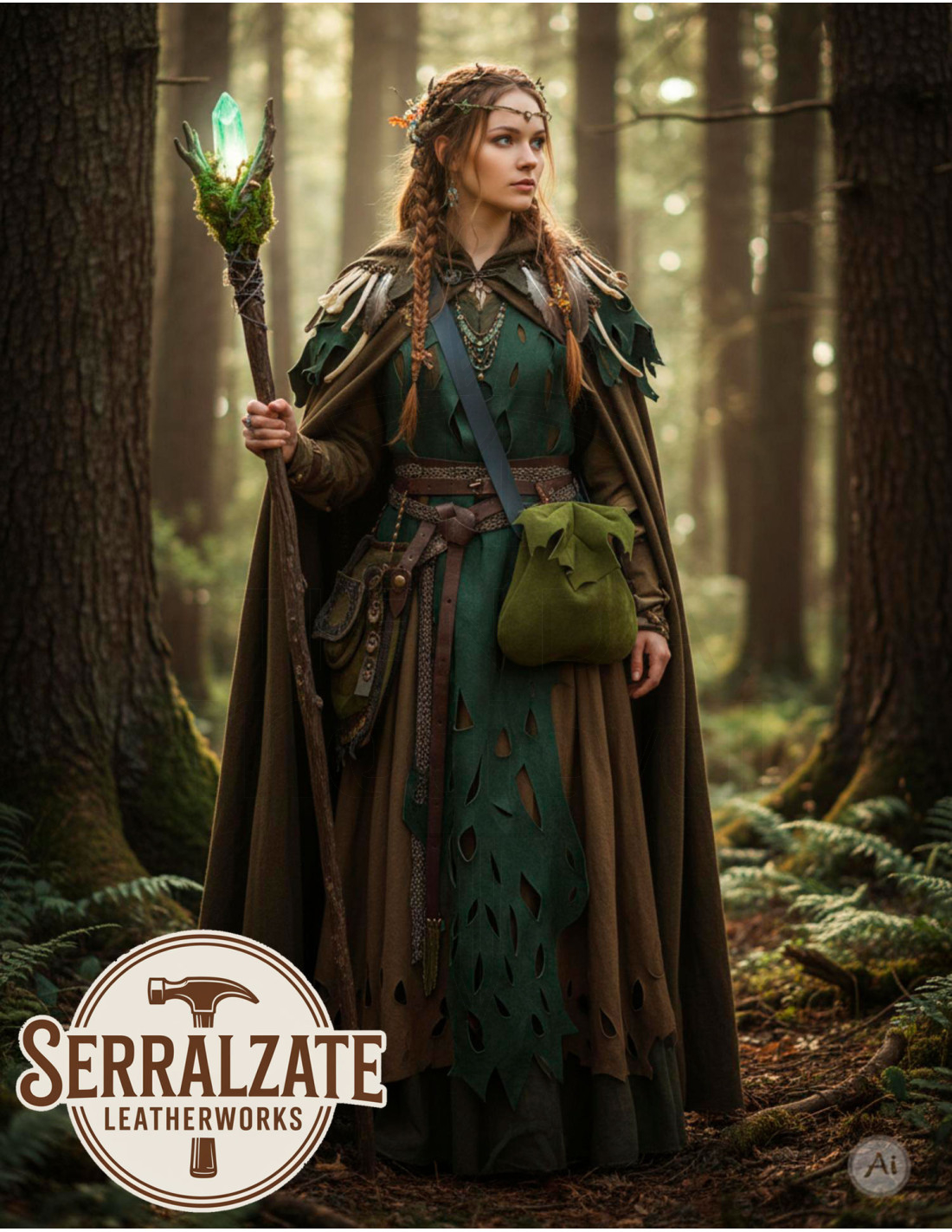 Meer dan een accessoire, biedt het visuele samenhang aan personages die met de natuur verbonden zijn, zoals beschermer of verkenner van het bos, de narratief van de outfit versterkend met een authentieke en bewerkte afwerking. De keuze voor buffelleer geeft een aardse en authentieke uitstraling, ideaal voor wie op zoek is naar stukken met karakter en een scenische aanwezigheid.
