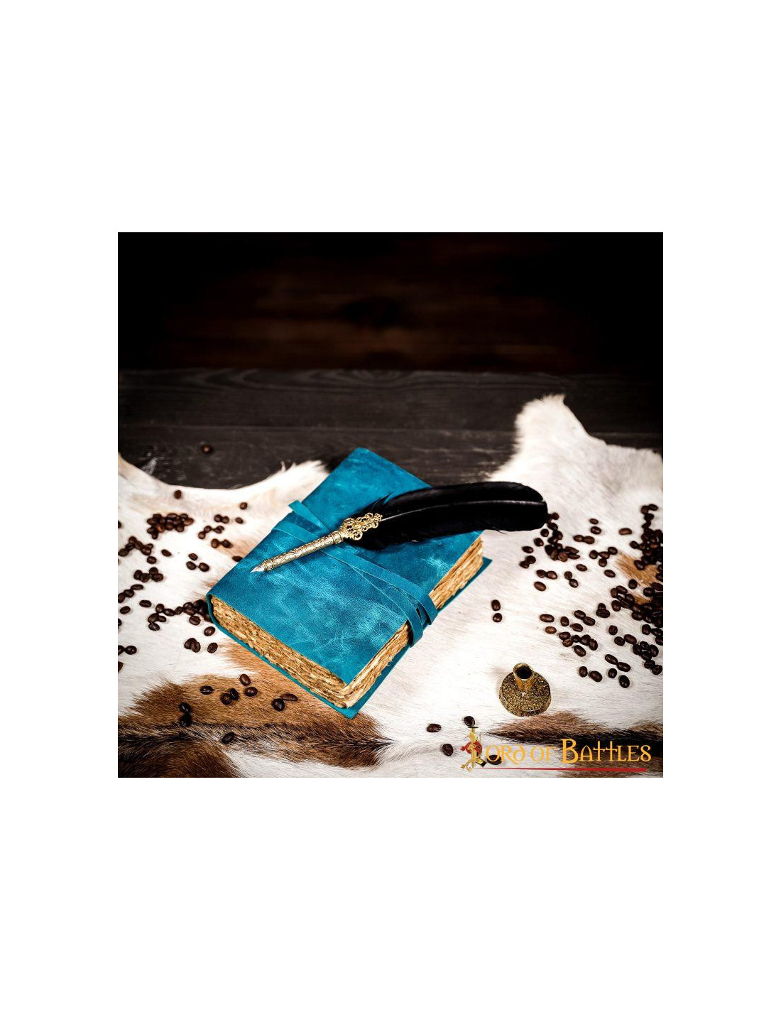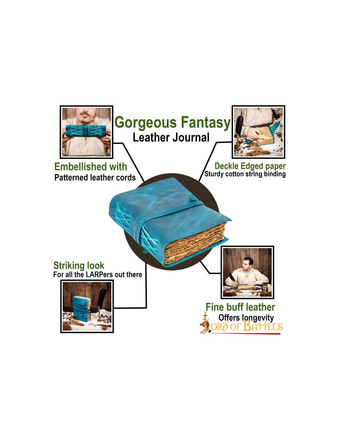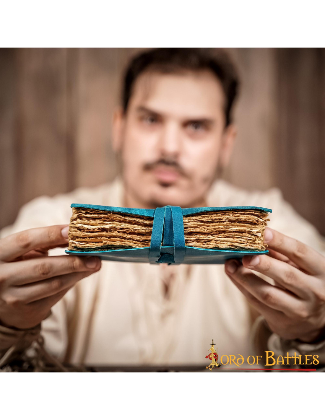 Gemaakt met hoogwaardige materialen, is dit blauwe leren dagboek de perfecte aanvulling op je gedachten en dromen. De 110 antieke pagina's, handgemaakt met perfecte randen, brengen je elke keer dat je het opent naar een wereld van fantasie. De textuur en geur van echt volnerf leer omhult je en geeft je een ongeëvenaarde tactiele ervaring.