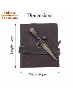 Ben je een liefhebber van middeleeuwen en avonturenverhalen, dan is dit kleine middeleeuwse leren dagboek met mini-dolk perfect voor jou. Met een lengte van 5 cm en een breedte van 6,3 cm is dit dagboek het ideale accessoire om mee te nemen op reis en je gedachten en avonturen op te schrijven.