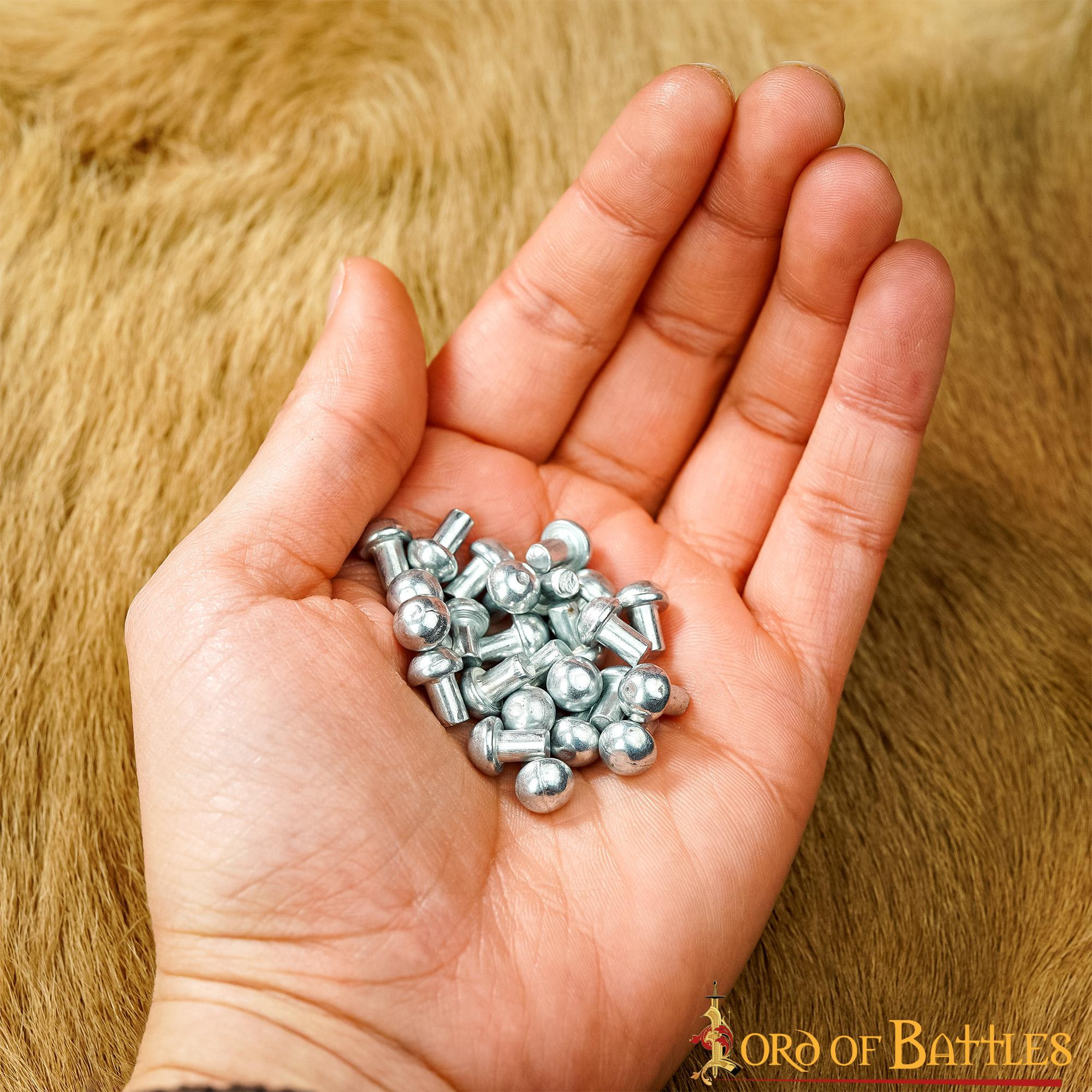 Maak je klaar voor je leerwerk- en pantserprojecten met het pakket van 100 Mushroom Head stalen klinknagels. Deze klinknagels lijken misschien triviaal, maar ze zijn cruciaal voor je creaties!