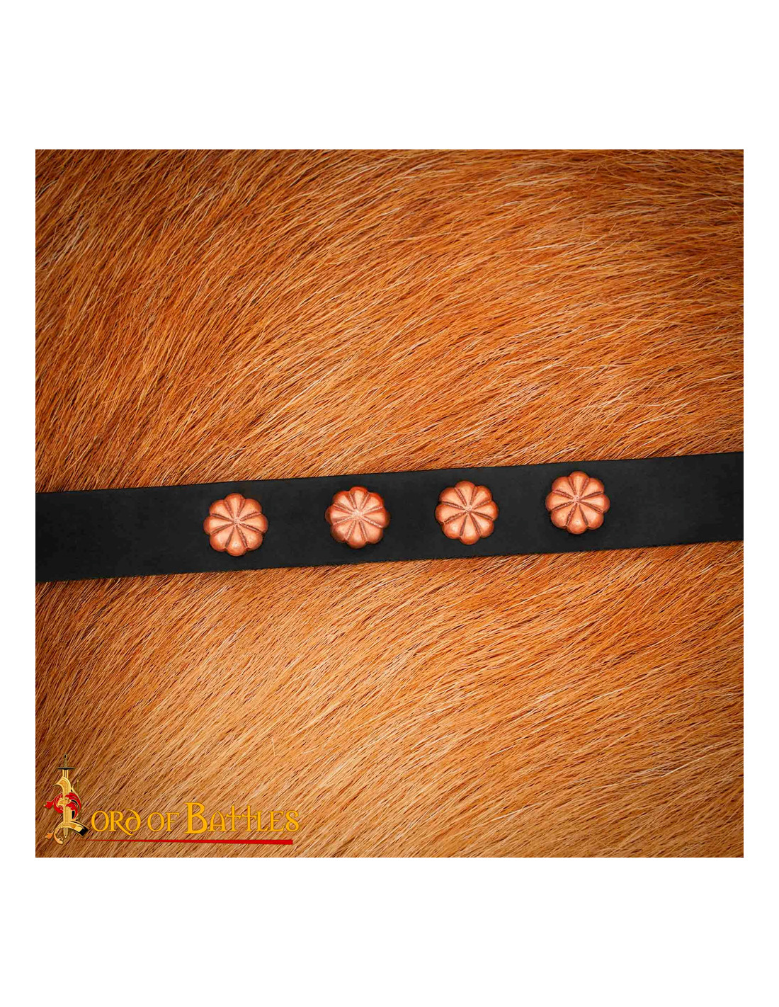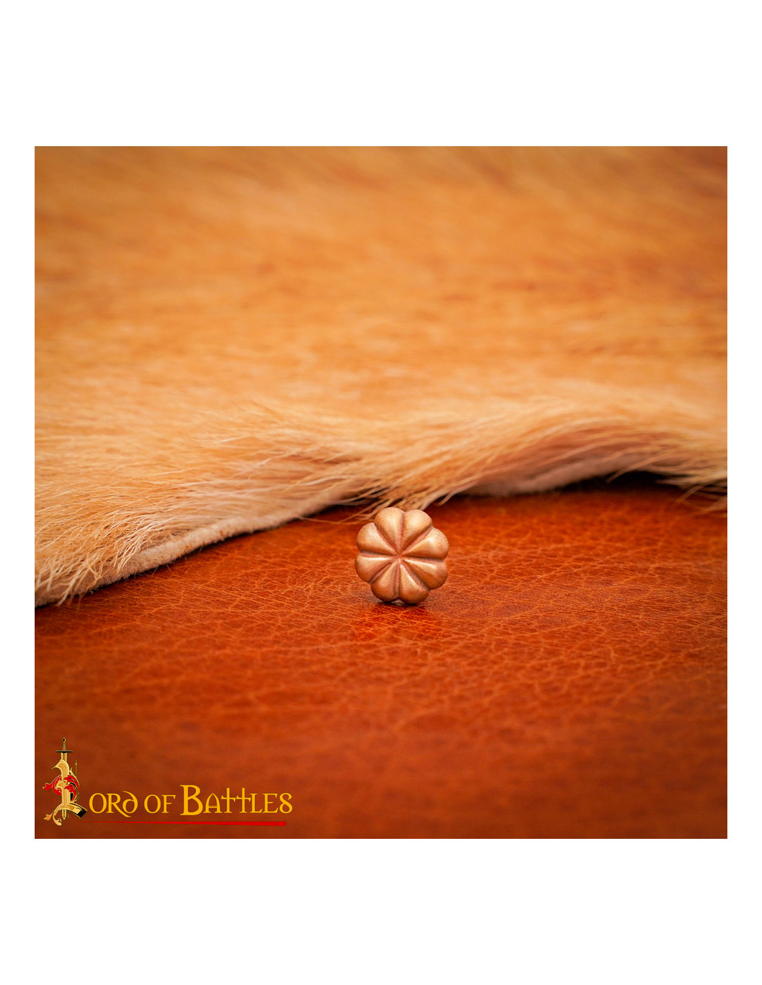 Laat je stijl niet beperken tot het conventionele. Met het pakket van 5 riemversieringen model Bloem in brons kies je voor een optie die niet alleen je verfijnde smaak weerspiegelt, maar ook je waardering voor kwaliteit en kunst.