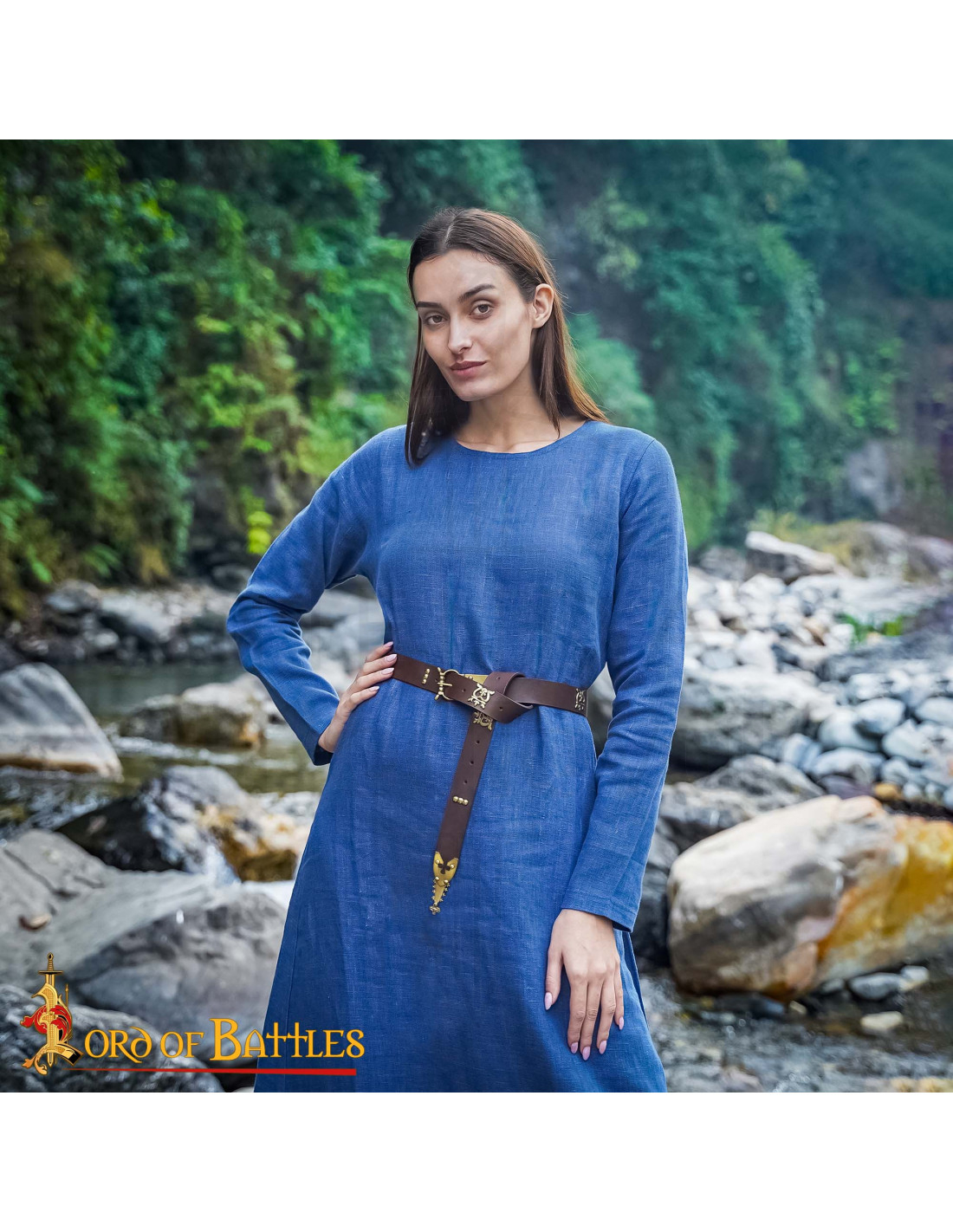 De keuze voor massief messing zorgt voor een gevoel van degelijkheid en duurzaamheid, wat betekent dat je je geen zorgen hoeft te maken over broze stukken tijdens beursdagen, LARP-sessies of lange optredens. De gladde en glanzende afwerking maakt het gemakkelijk om te combineren met verschillende outfits, zonder in te boeten op comfort of functionaliteit: het houdt de punt van de riem vast, voorkomt fraying en biedt een professionele afwerking die elke historische of door het verleden geïnspireerde kleding benadrukt.