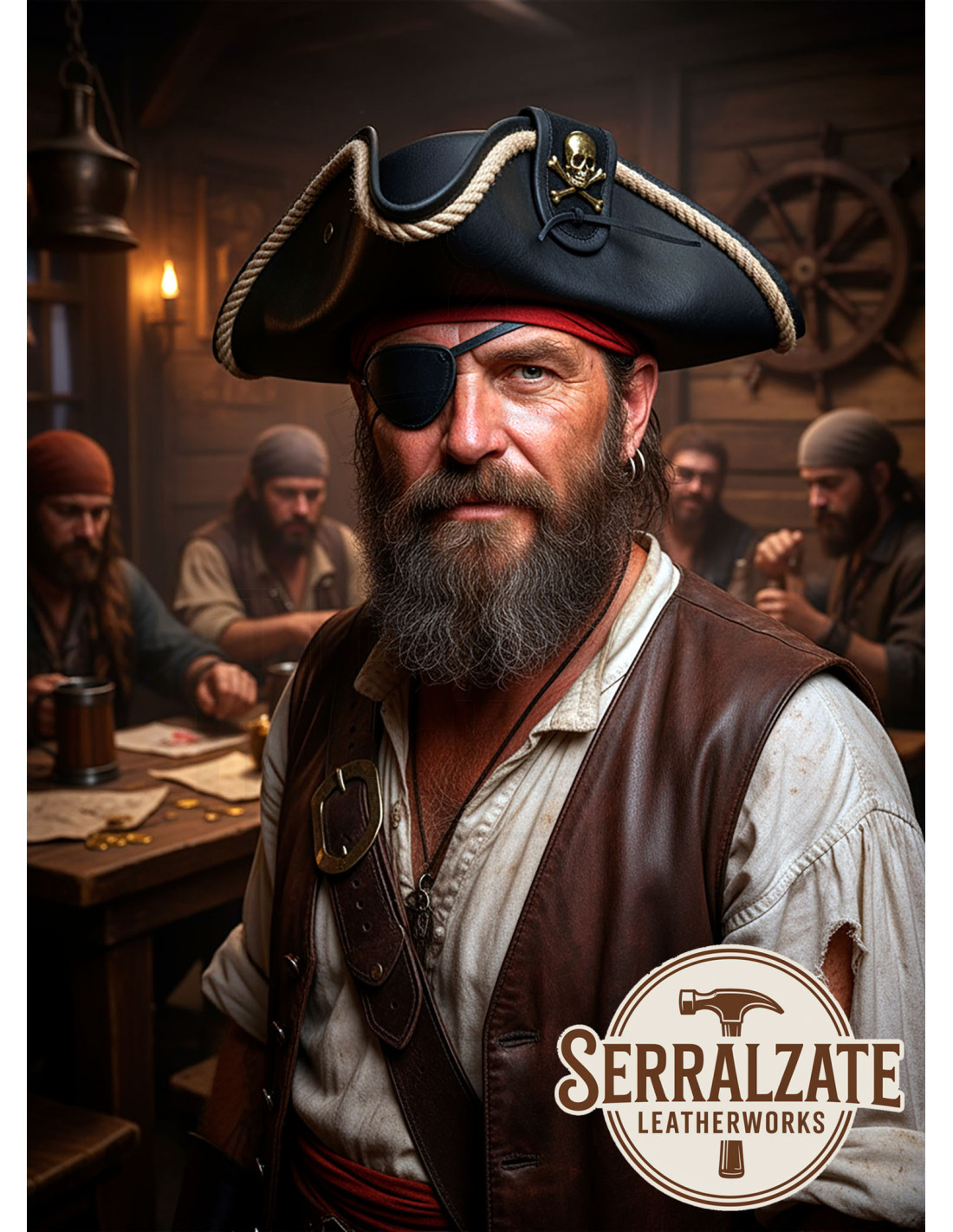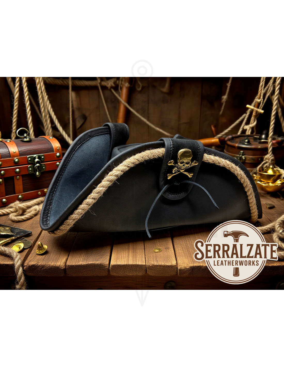 Geniet van het comfort en de duurzaamheid die het leer biedt, ontworpen om de meest dynamische avonturen te doorstaan zonder aan stijl in te boeten. Dankzij het ontwerp is deze hoed niet alleen een opvallend accessoire, maar ook een stuk dat opvalt bij elk evenement, waardoor jij de aandacht trekt terwijl je elke moment verovert met een vleugje stoutmoedigheid en karakter. Maak van elke gelegenheid een ware odyssee met de hoed die elke dappere piraat inspireert!