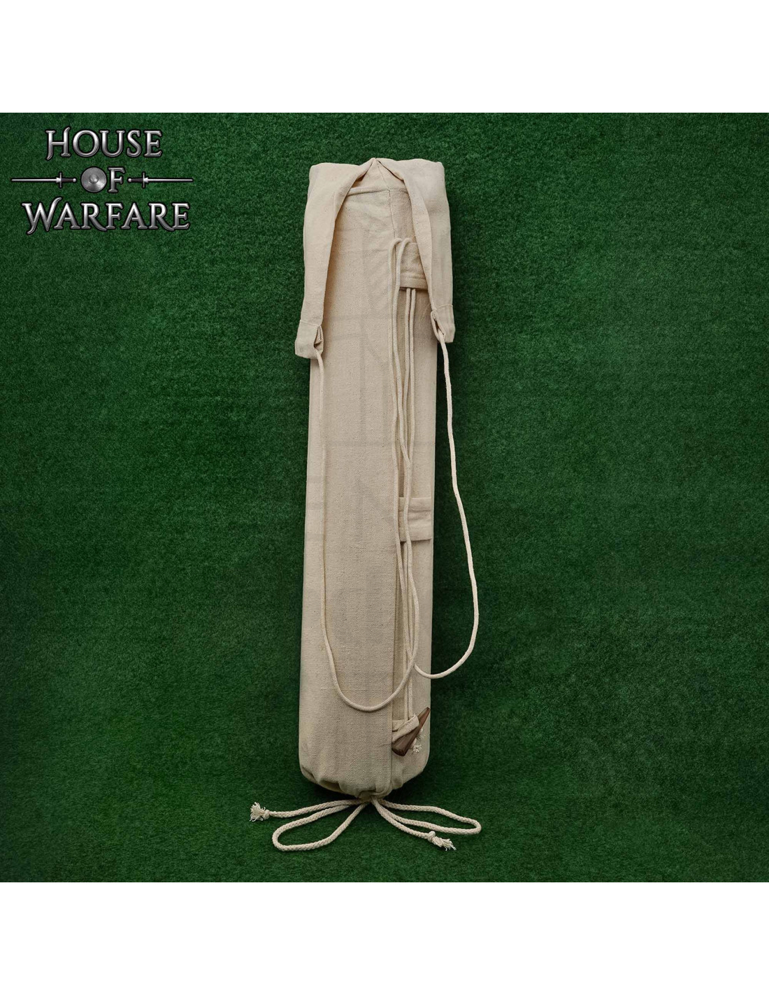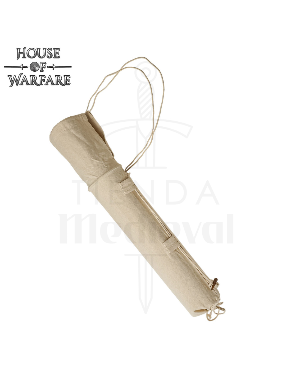 De verstelbare katoenen koorden stellen je in staat om de manier waarop je het draagt aan te passen voor jouw gemak, of je nu kiest voor op de rug, over de schouder of op de heup, en bieden mobiliteit zonder stabiliteit op te offeren. De natuurlijke beige tint en de stevige textuur van de stof passen goed bij historische kleding en moderne uitrusting, en geven een ingetogene, functionele afwerking.
