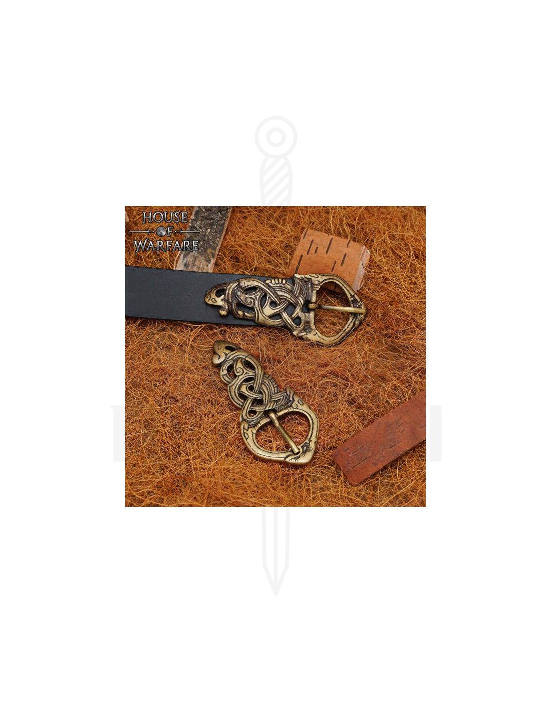 De aanwezigheid van de slangenknoop, gecarven in messing met een verouderd gouden afwerking, zorgt voor de visuele impact die iedereen zoekt die wil opvallen, waarbij een eenvoudige riem wordt omgevormd tot een stuk met karakter. Het dierenmotief en de verweven patronen verwijzen naar de Noordse traditie, en bieden een authentieke uitstraling die zowel historische recreatie-outfits als moderne looks met karakter versterkt.