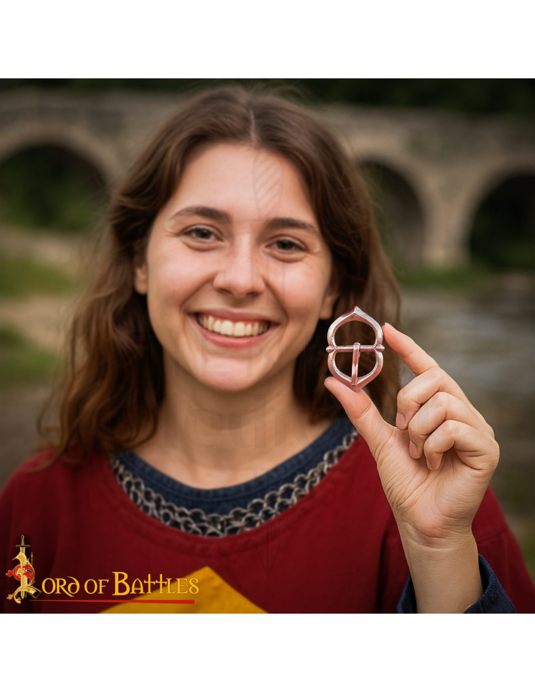 Als je zoekt waar je een middeleeuwse gesp voor een riem in gepolijst brons kunt kopen, verenigt dit stuk authenticiteit en praktische toepassingen in een formaat dat is ontworpen voor degenen die waarde hechten aan detail. Het is perfect om een renaissance-outfit compleet te maken, karakter toe te voegen aan recreatiekleding of een historische draai te geven aan je dagelijkse garderobe.