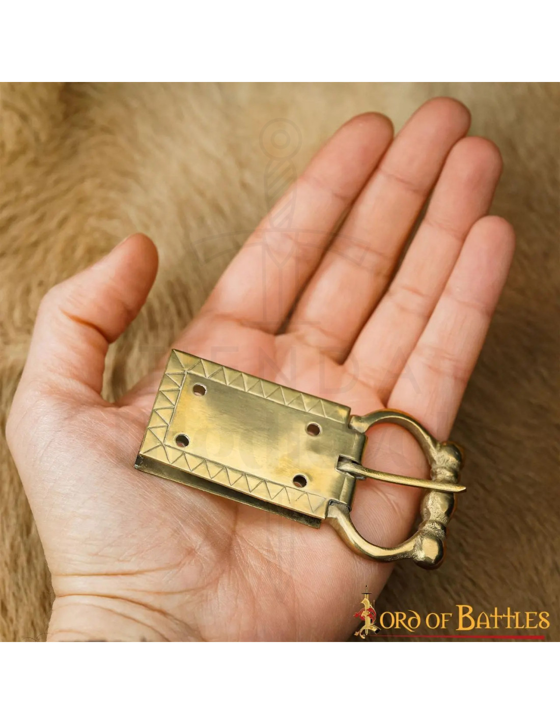Verhoog je middeleeuwse outfit met de gesp van massief messing. Elk detail telt als het gaat om het recreëren van een authentieke historische ervaring. De messing gesp die we je presenteren is een van die elementen die het verschil zullen maken in je kleding. Zorg ervoor dat je het toevoegt aan je riem voor een spectaculaire LARP- of historische recreatie-outfit!