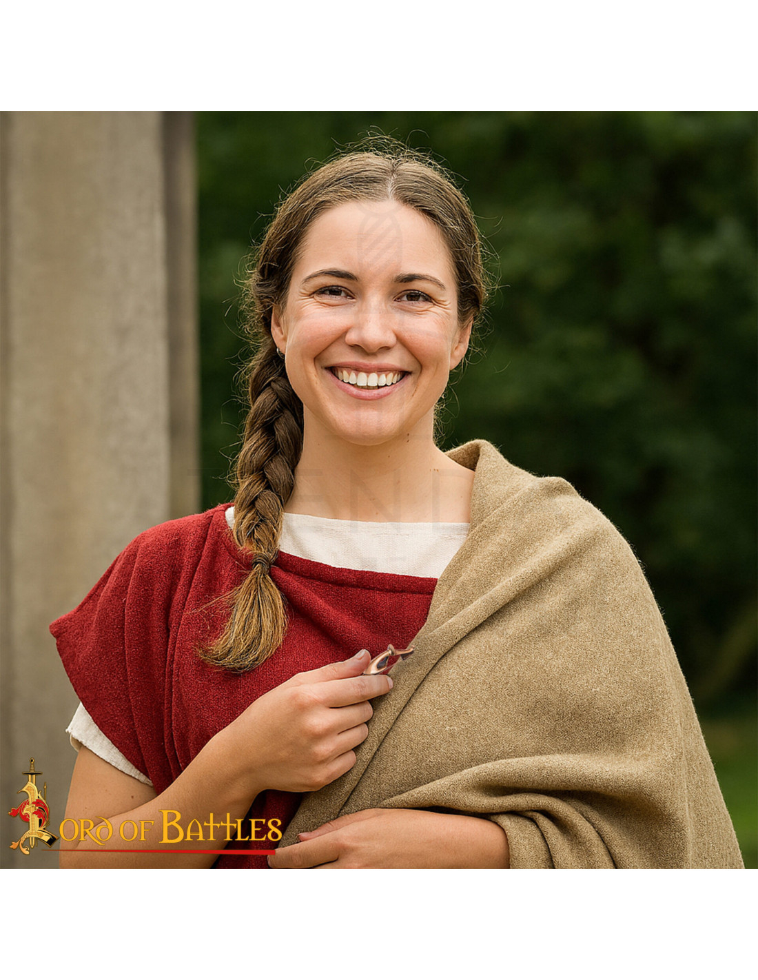 Gemaakt met de traditionele techniek van verlorenwas, behoudt elk stuk kleine variaties die het uniek maken, vertaalt het ambachtsproces zich in een afwerking met ziel, ideaal voor degenen die replicas met historische betekenis waarderen. De sluiting heeft een met de hand gesmeed ijzeren speld, wat zorgt voor een stevige en betrouwbare sluiting, perfect om dikke stoffen te beveiligen zonder de esthetiek in gevaar te brengen.