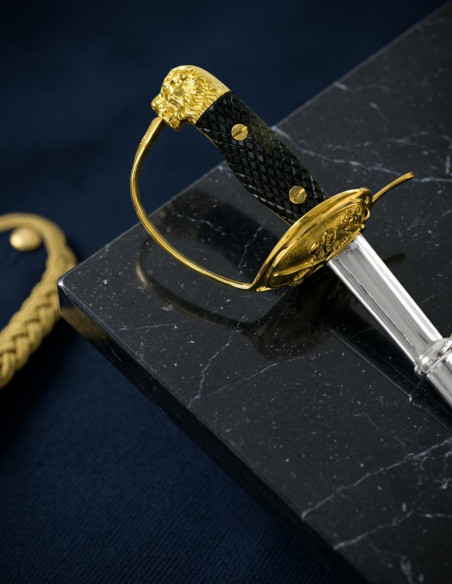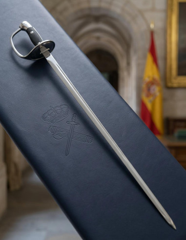 Fabricado en Toledo, bajo la supervisión de la reconocida marca Bermejo, este sable representa más que un arma: es una declaración de carácter. Su hoja de acero inoxidable pulido, grabada al ácido, garantiza durabilidad y un aspecto que impone sin palabras. La empuñadura de latón bañada en oro no solo aporta sofisticación, sino que demuestra la confianza en la calidad más alta. Incluye una vaina que asegura protección fácil y rápida. Es más que un sable; es el legado que portarás con orgullo, la herramienta que te conecta con la historia y el prestigio de la Guardia Civil.