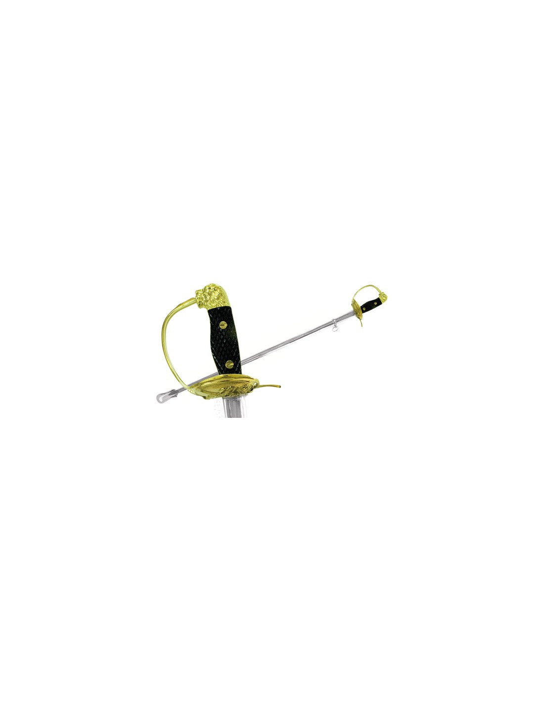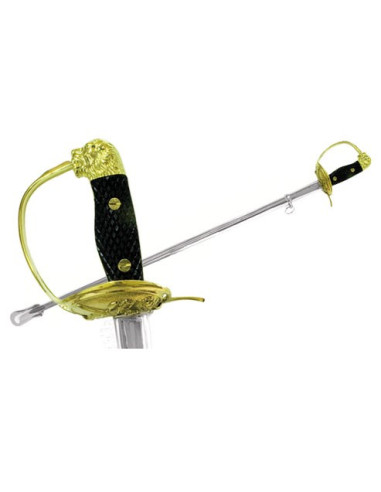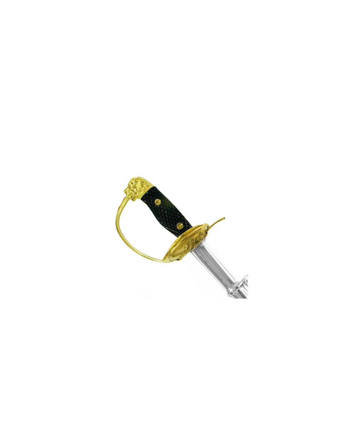 Het gevest van deze sabel is gemaakt van messing en verguld, wat hem een verfijnde, hoogwaardige uitstraling geeft. Dit handvat, samen met het gegraveerde lemmet, maken deze sabel tot een uniek en exclusief stuk.