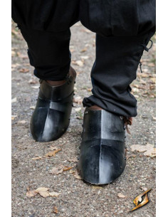 Deze Middeleeuwse escarpes in zwart van Epic Armoury zijn de essentiële aanvulling voor elke krijger die onverslaanbare bescherming wil combineren met een imposante uitstraling. Ontworpen om over je schoenen of laarzen te dragen, bieden ze maximale veiligheid tijdens je LARP-gevechten, historische reconstructies of thematische evenementen.
