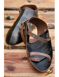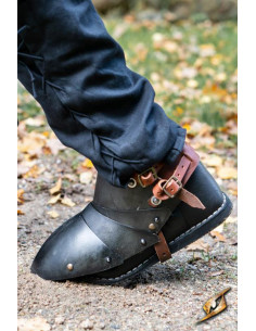 Naast hun functionaliteit roepen het ontwerp en de afwerking van deze escarpes een authentieke middeleeuwse sfeer op, waardoor je je meteen in de tijd van ridders en epische veldslagen waant. De zwarte afwerking geeft ze een onderscheidende en elegante uitstraling. Bovendien zijn ze verkrijgbaar in drie maten voor een perfecte en comfortabele pasvorm voor elke krijger.