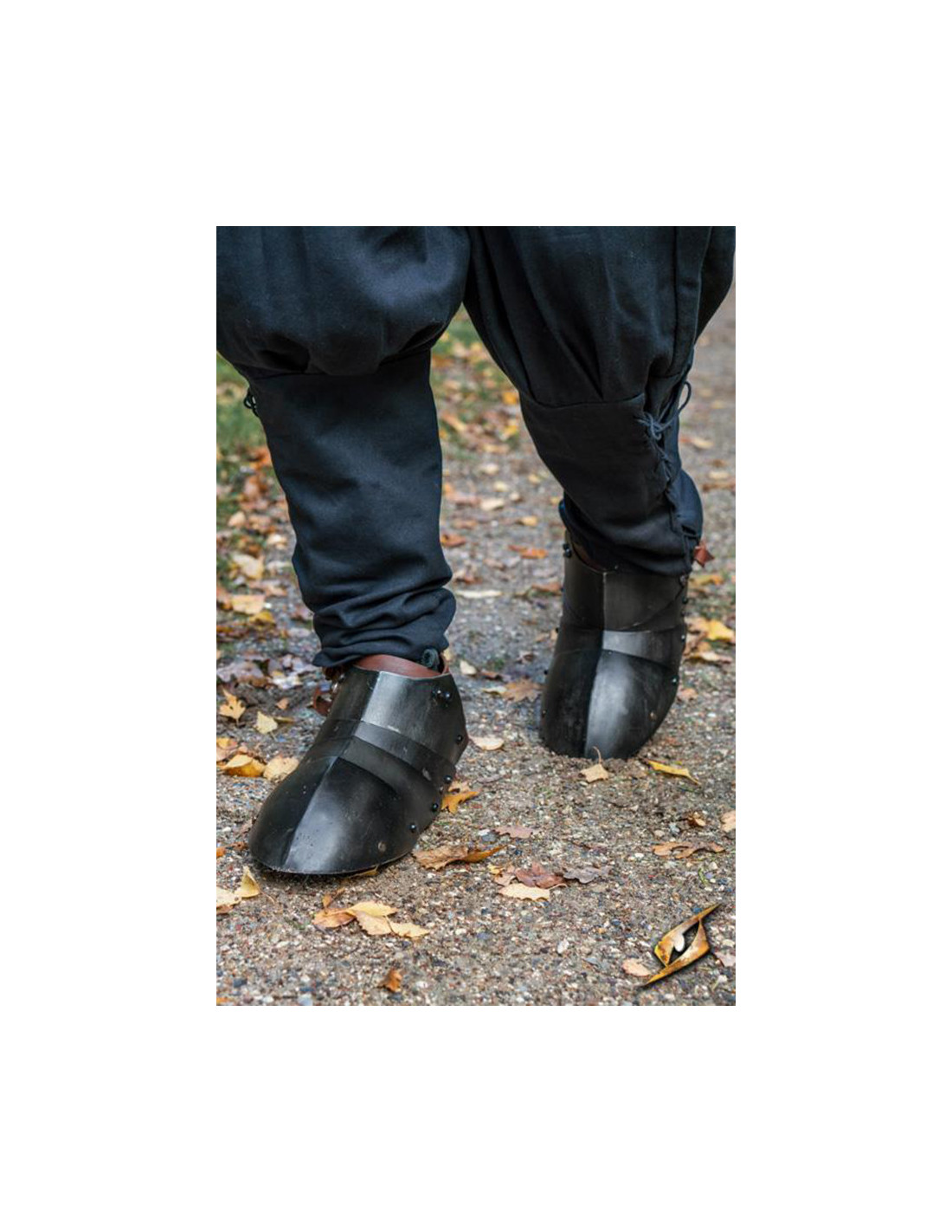 Naast hun functionaliteit roepen het ontwerp en de afwerking van deze escarpes een authentieke middeleeuwse sfeer op, waardoor je je meteen in de tijd van ridders en epische veldslagen waant. De zwarte afwerking geeft ze een onderscheidende en elegante uitstraling. Bovendien zijn ze verkrijgbaar in drie maten voor een perfecte en comfortabele pasvorm voor elke krijger.