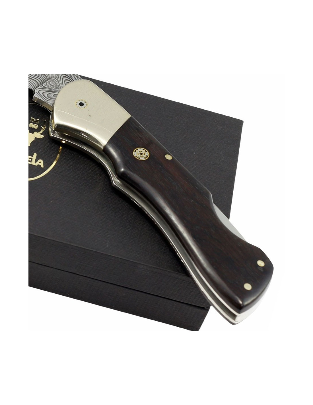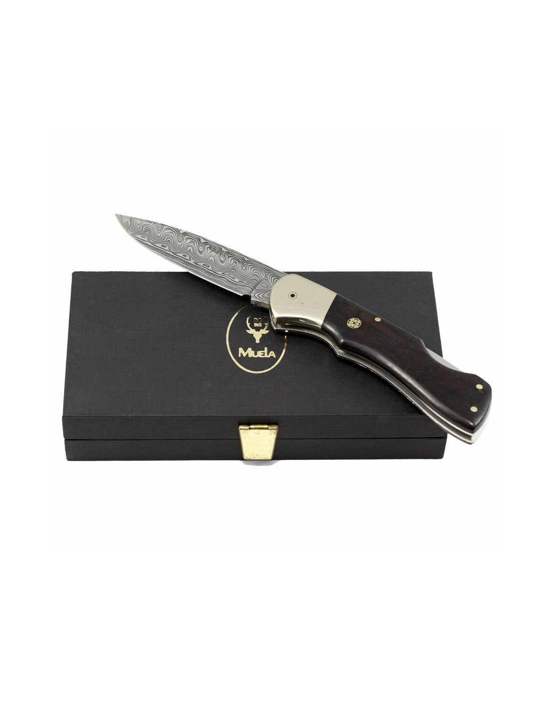 Ontdek het elegante en uitzonderlijke Muela Razor Bx Dam-model met roestvrijstalen damaststalen mes en granadilla en nikkelzilveren handvat!