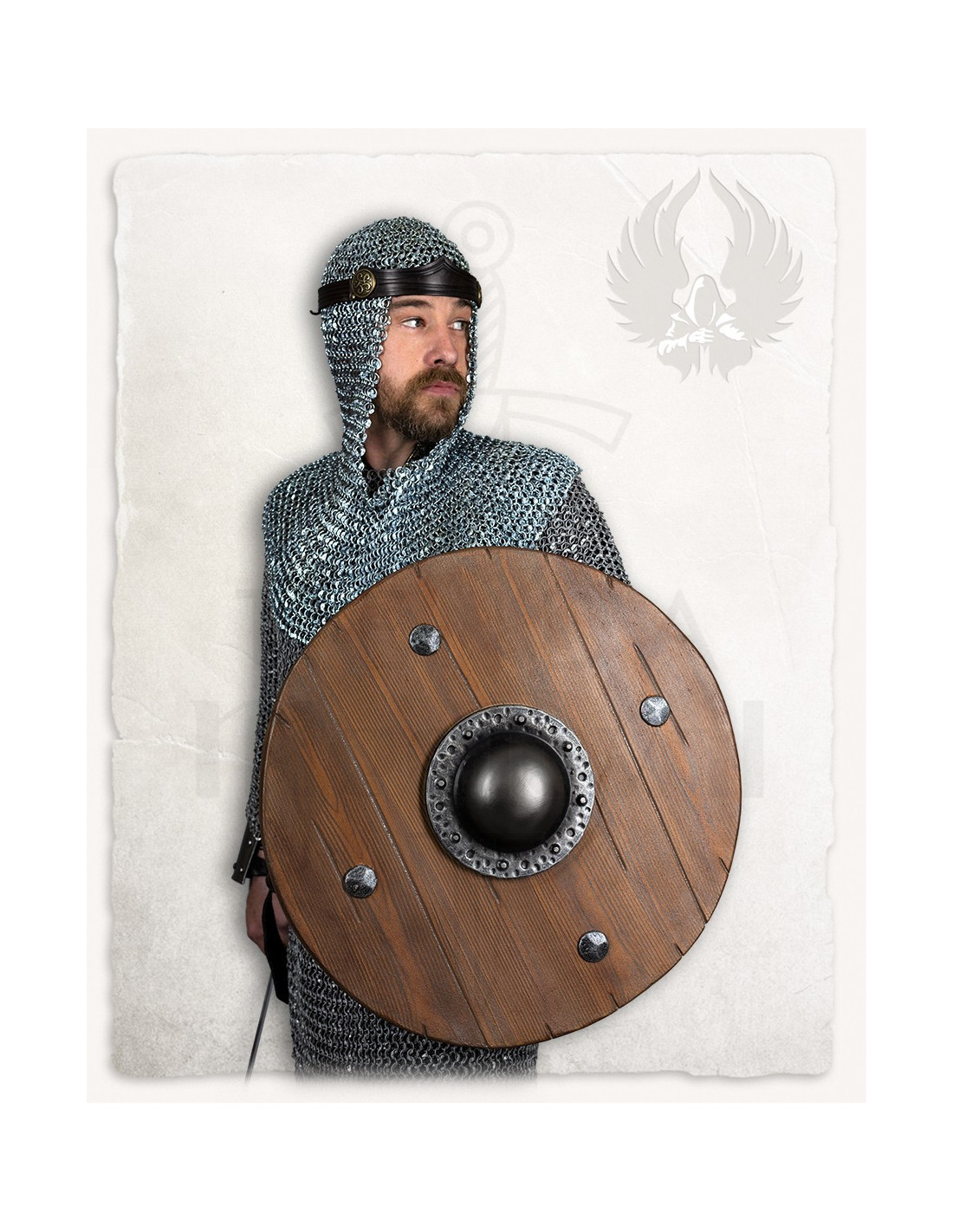 Perfect om een Viking, plunderaar of een woeste krijger te recreëren in toneelstukken of historische evenementen, valt deze kap op door de houtafwerking die een natuurlijke en robuuste uitstraling geeft. Bovendien maken de uitgebalanceerde grootte en het gewicht het comfortabel in gebruik voor elke geschiedenis- en cultuurenthousiasteling.