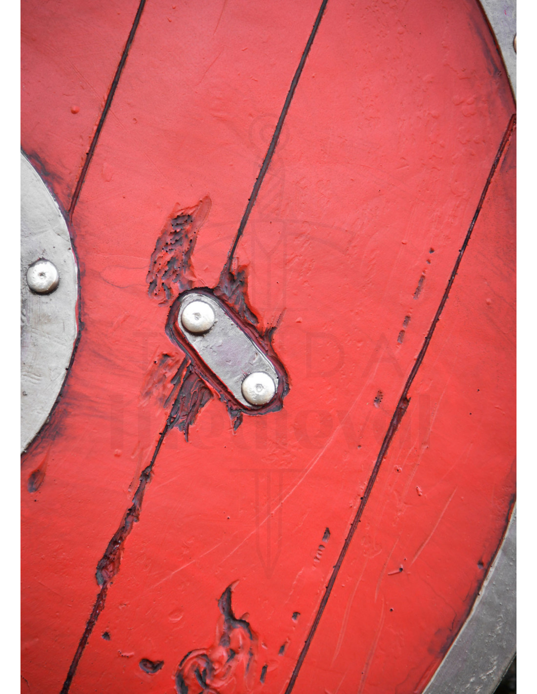 Skjaldar is niet zomaar een object; het is het stuk dat jouw interpretatie transformeert: de afwerking die geschilderd hout in het rood imiteert met de slagmarkeringen die verhalen vertellen, terwijl de rand en het beslag in een metalen uiterlijk een indrukwekkende aanwezigheid geven zonder mobiliteit op te offeren. De balans tussen stevigheid en lichtheid stelt je in staat om krachtig te blokkeren en snel te reageren, de controle te behouden zelfs als de actie intenser wordt, en de constructie van flexibel schuim biedt veiligheid tijdens botsingen zonder realisme te verliezen.