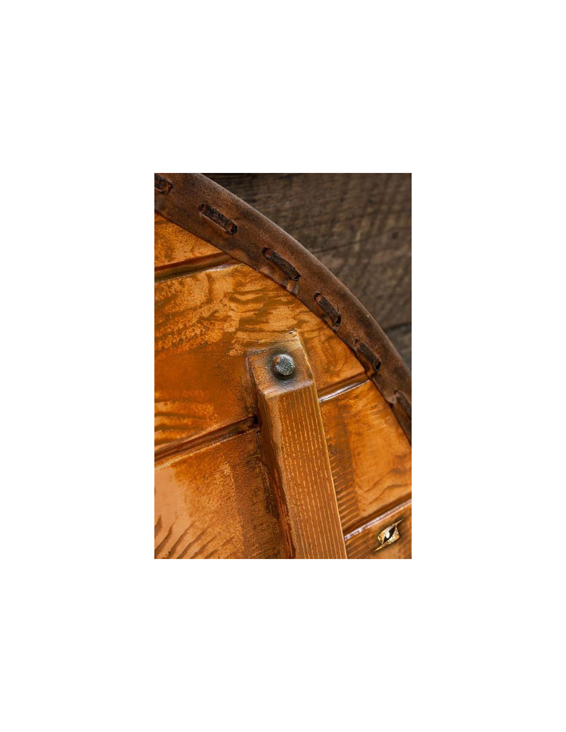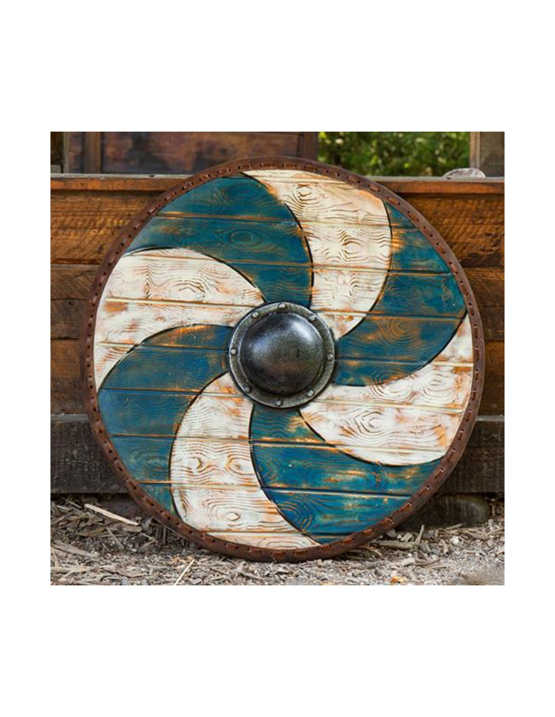 De Celtic Shield Thegn Blue-White is het perfecte accessoire voor liefhebbers van Live Action Role Play (LARP). Dit ronde schild is gemaakt van hoogwaardig EVA-schuim, waardoor het resistent en duurzaam is. Bovendien is het met de hand beschilderd met een geslaagd houtnerfeffect, waardoor het een authentieke en realistische uitstraling krijgt.