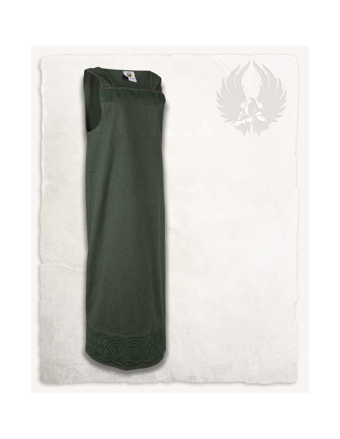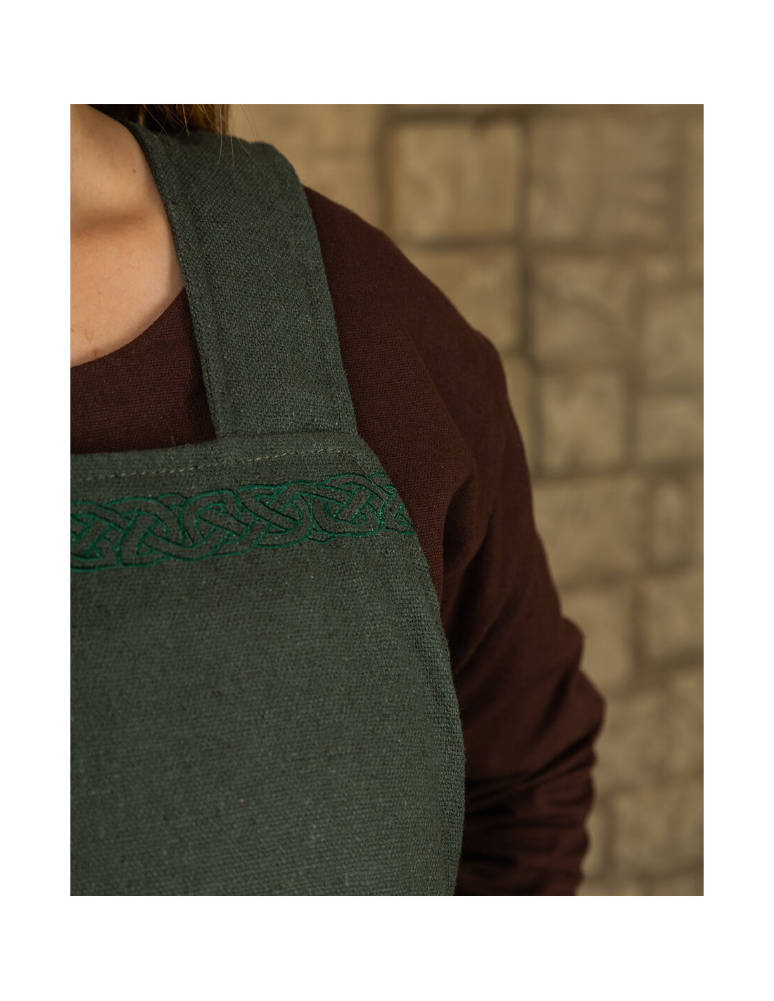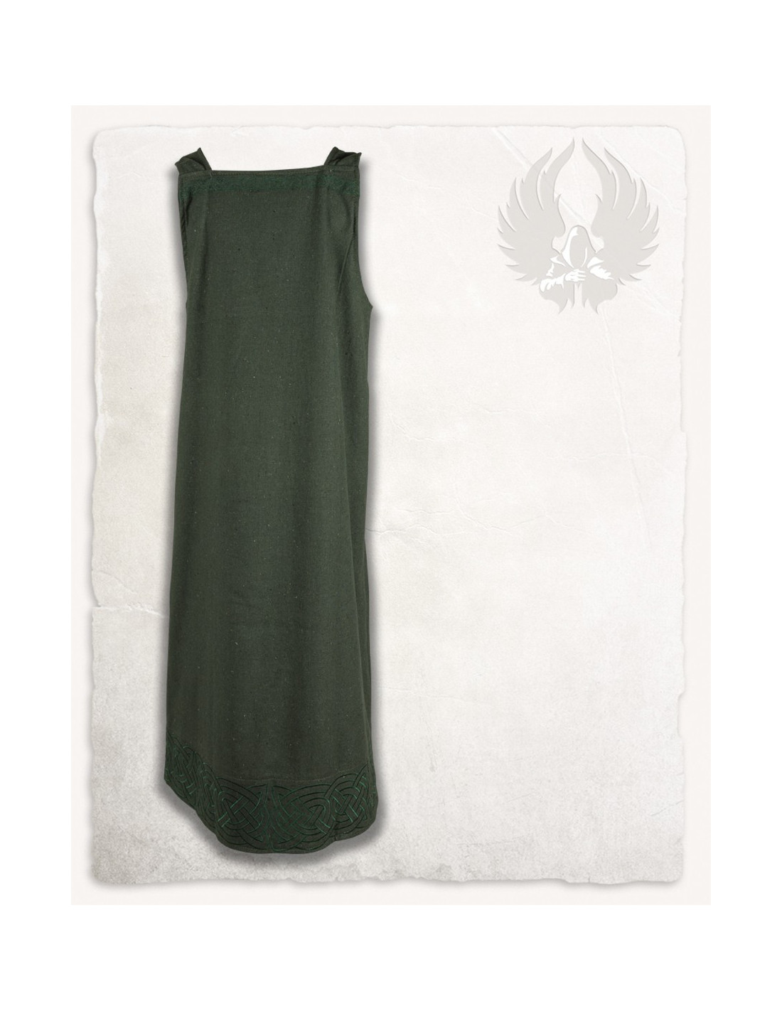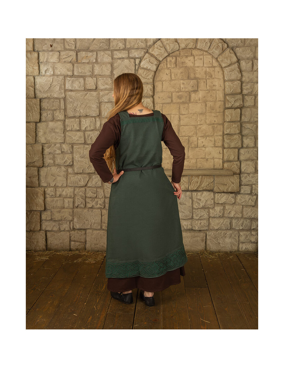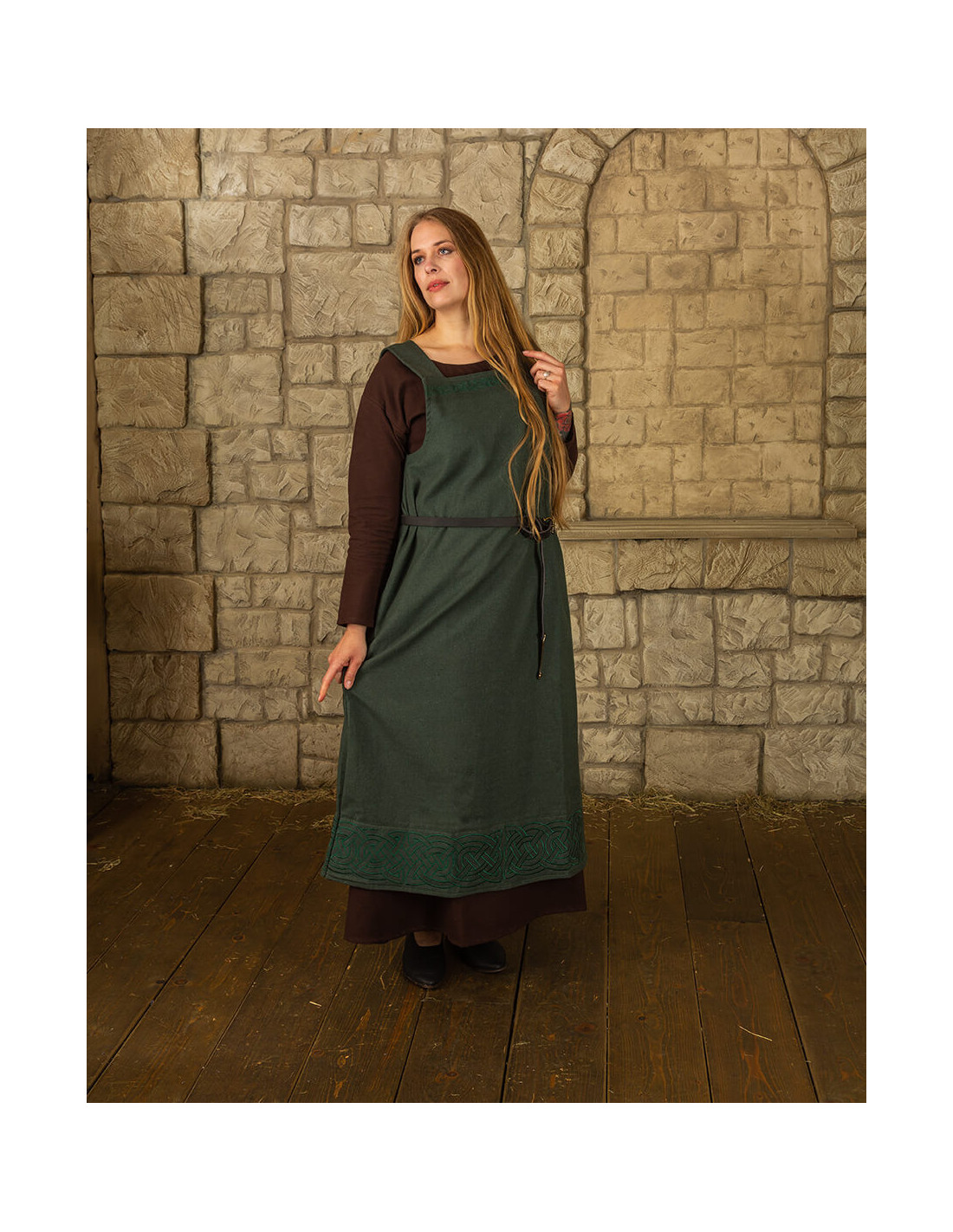 De Alva Viking schortjurk in groen is de perfecte keuze voor elk middeleeuws evenement. Het authentieke en gedetailleerde ontwerp neemt je mee naar het Vikingtijdperk, zodat je jezelf volledig kunt onderdompelen in de ervaring. Bovendien past het perfect bij ons ""Marita""-kledingstuk eronder voor extra comfort en stijl.