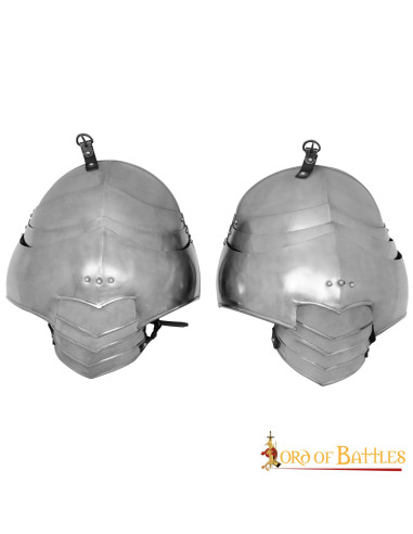 Een van de belangrijkste voordelen van deze schoudervullingen is dat ze zijn gemaakt van 18-gauge zacht staal, een licht maar sterk materiaal dat u volledige mobiliteit biedt zonder uw bescherming in gevaar te brengen. Je zult je niet ongemakkelijk of beperkt voelen tijdens je middeleeuwse avonturen, of het nu gaat om een LARP-re-enactment of een historische kermis.