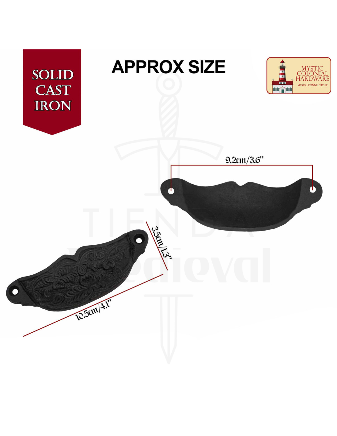 Ontworpen voor wie waarde hecht aan gevoel en duurzaamheid, geeft gietijzer een robuuste sensatie die je elke keer ervaart als je aan de lade trekt, terwijl de donkere afwerking het oppervlak beschermt tegen dagelijkse vlekken, en zijn karakter behoudt bij gebruik. De komvorm maakt het mogelijk om met één hand te openen, wat de ergonomie van lades en deuren verbetert, en de bijgevoegde zijbevestigingen maken een snelle en veilige installatie in hout mogelijk.
