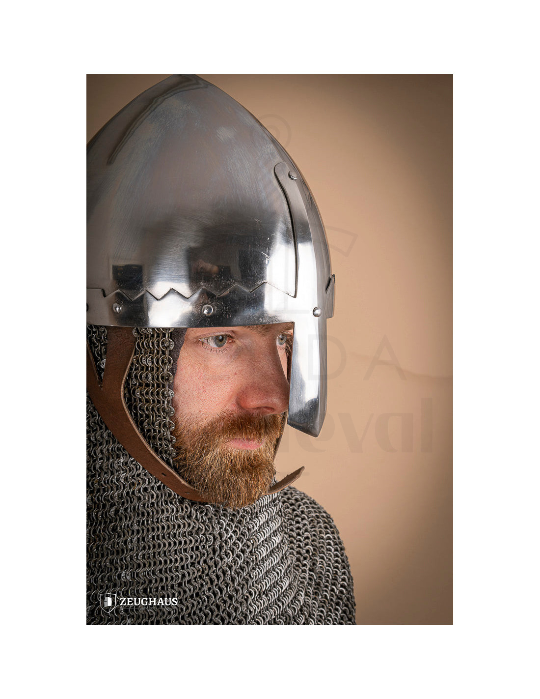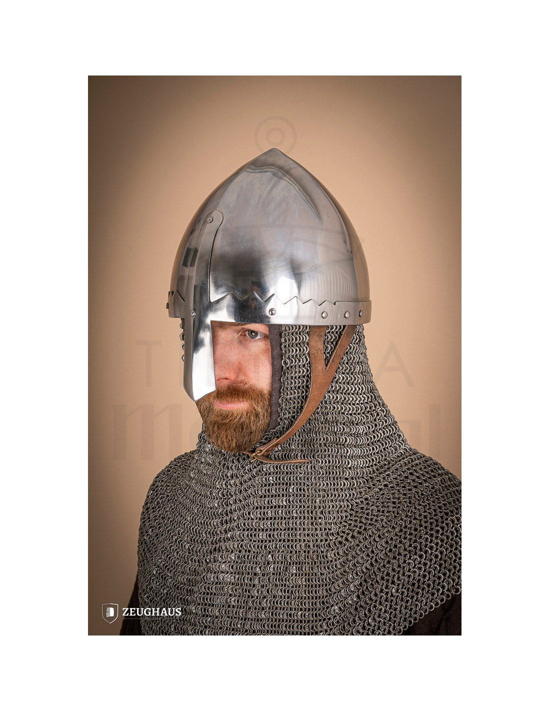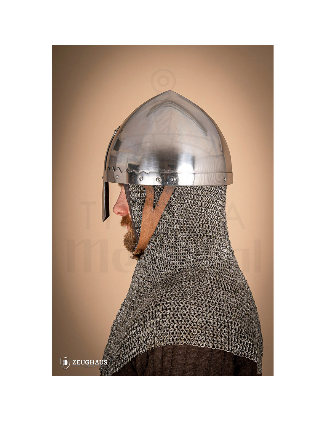 De Spangenhelm type Thorsten, met een glanzende afwerking, is een klassiek stuk geïnspireerd op historische modellen uit Noord-Europa tijdens de Hoge Middeleeuwen. De oorsprong dateert zelfs uit de Late Oudheid, waar het werd gebruikt door nomadische volken, wat het de ideale keuze maakt om Noordse personages of strijders uit die tijd te...