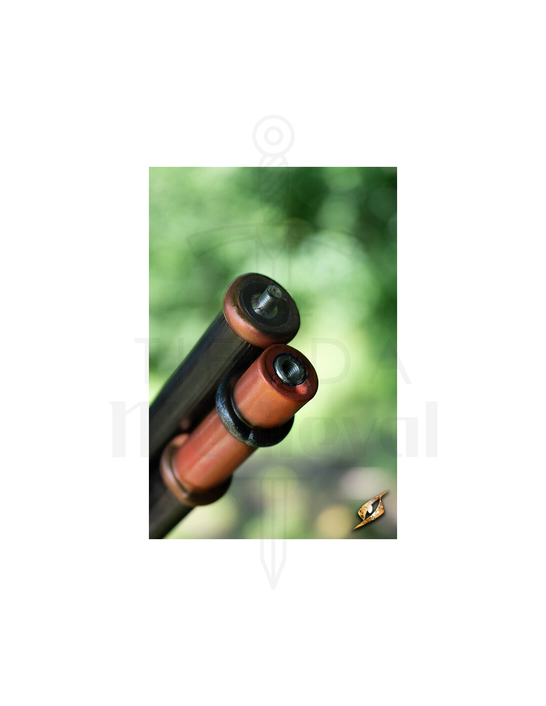 Ontworpen in twee delen die veilig in elkaar draaien, vergemakkelijkt het transport en opslag zonder in te boeten aan duurzaamheid of prestaties. De scherpe punt en de tandenachtige details herinneren aan oude jachtwapens, wat dat primitieve en meedogenloze tintje geeft dat je aanwezigheid op het slagveld onvergetelijk zal maken.