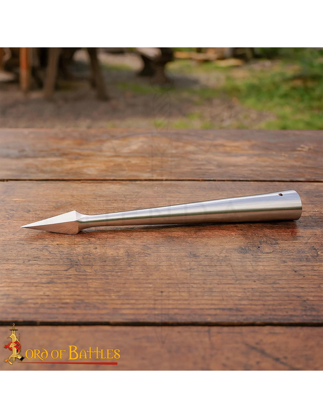 Bereid je voor om je gevechtsvaardigheden naar een nieuw niveau te tillen met deze medievale driehoekige speerpunt, gesmeed uit koolstofstaal! Je weet hoe effectief een speer kan zijn in de strijd, maar dat hangt grotendeels af van de kwaliteit en perfectie van de punt. En dat is precies wat we je aanbieden!