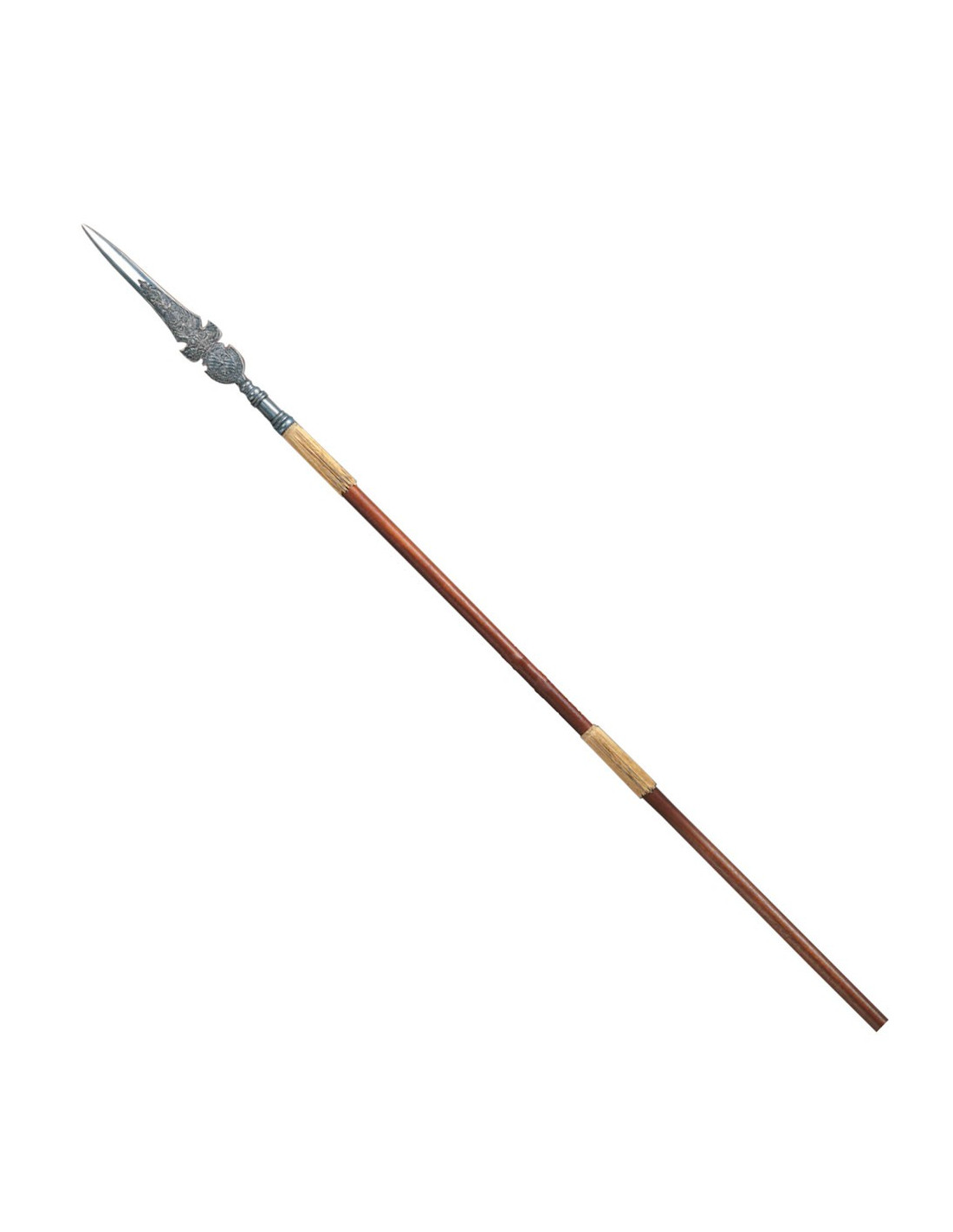 Een van de belangrijkste voordelen van onze speer is de kwaliteit van de materialen die bij de vervaardiging ervan zijn gebruikt. De hals is gemaakt van hout, waardoor hij uitzonderlijk sterk en duurzaam is. Bovendien is de kop van de speer gemaakt van Zamak, een materiaal dat de weerstand van zink combineert met de elegantie van aluminium, wat zijn schoonheid en zijn weerstand tegen het verstrijken van de tijd garandeert.