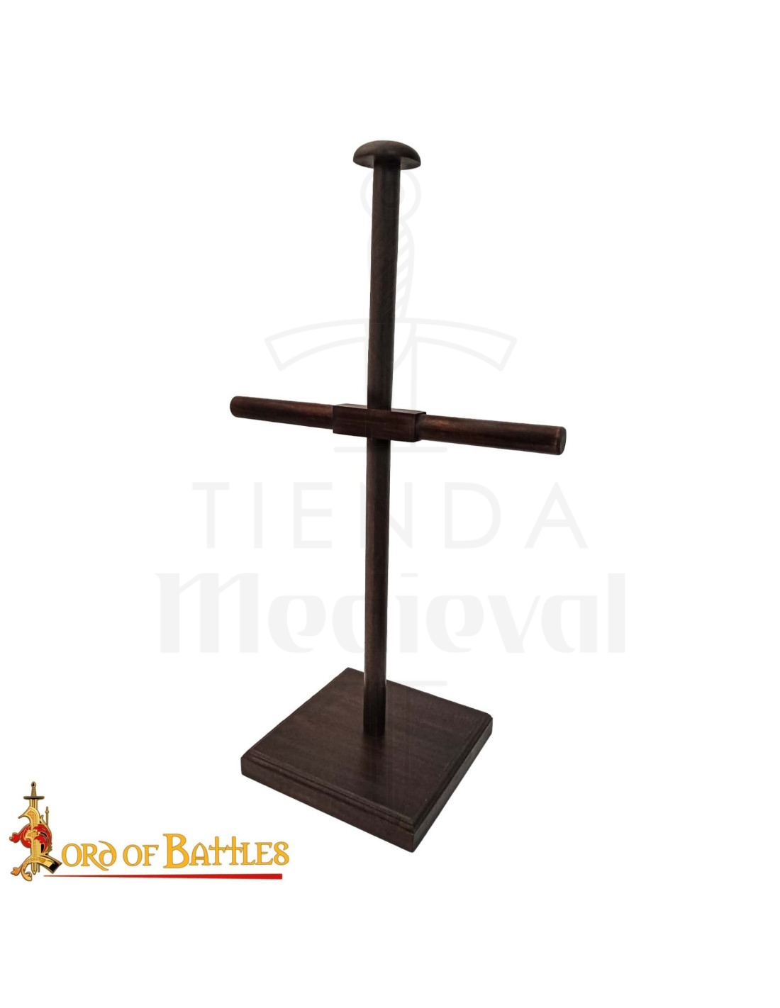 Het kruisontwerp, met een verticale paal eindigend in een ronde kop en een horizontale arm met cilindrische uiteinden, houdt helmen, harnassen en klederdrachten in evenwicht en in de juiste vorm. Die eenvoudige en functionele geometrie maakt het gemakkelijk om stukken snel te plaatsen en te verwijderen, nuttig voor zowel musea als thematische evenementen en live uitvoeringen.