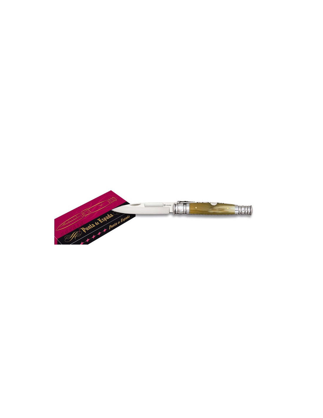 Ontdek het stiletto-scheermes dat alle verwachtingen overtreft! Met een prachtig handvat van imitatiegewei en een lemmet van 11 cm biedt dit mes uitzonderlijke stijl en prestaties. Vervaardigd door het gerenommeerde Cudeman-huis in Albacete, garandeert het de hoogste kwaliteit en duurzaamheid. Het handvat van imitatiegewei geeft het niet alleen een...