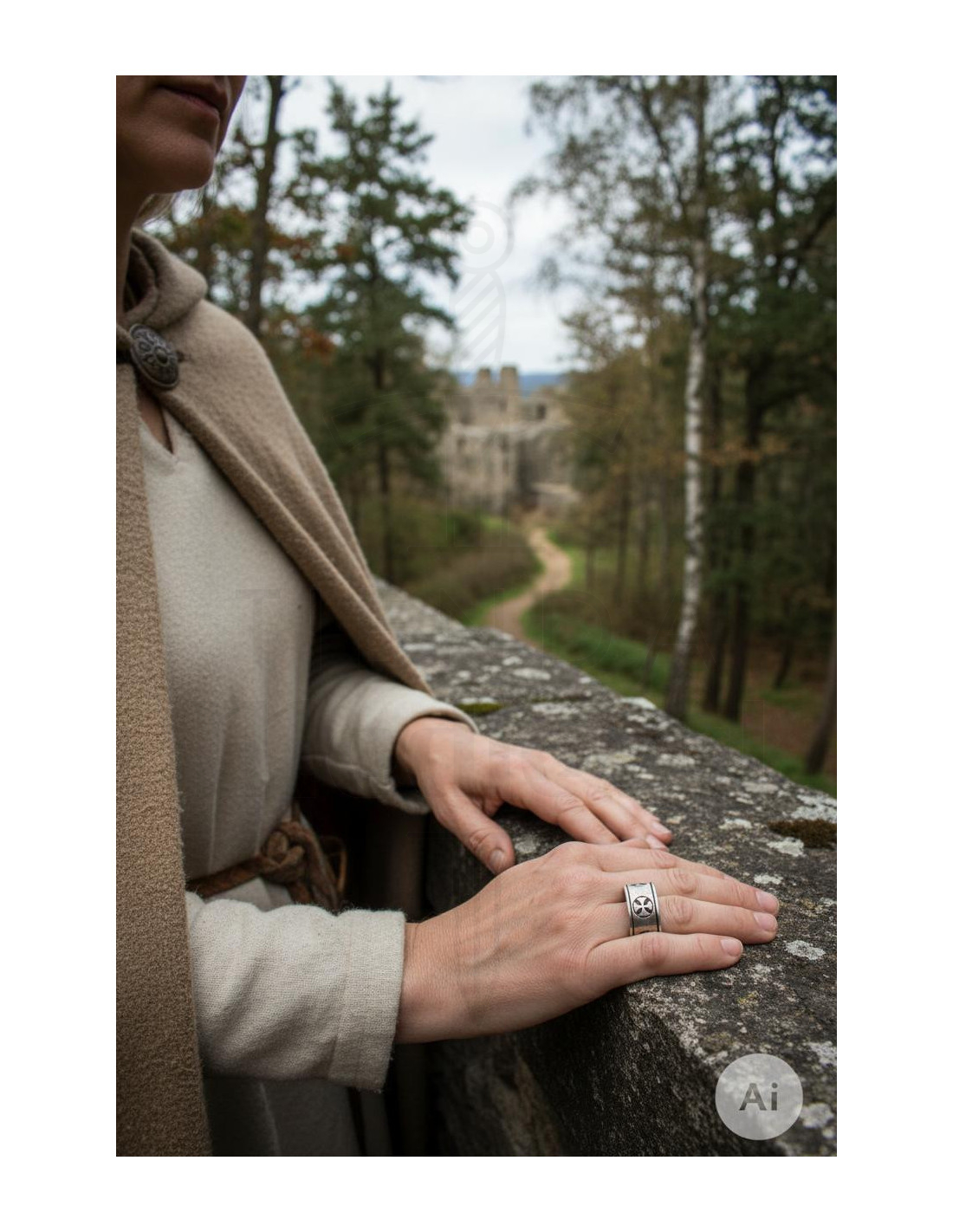Deze ring is gemaakt van hoogwaardig metaal met oud zilveren afwerkingen, waardoor hij een authentieke en middeleeuwse uitstraling heeft. Het unieke en gedetailleerde ontwerp toont de emblematische kruisen van de Tempeliers, een symbool van moed en eer.