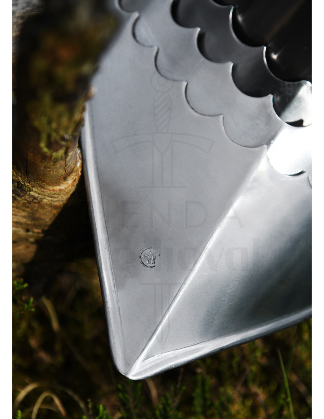Ontdek het authentieke functionele gotische hoofddeksel uit het jaar 1480! Dit indrukwekkende stuk bevat een vizier met een clip, een kinband en vulling aan de binnenkant om je maximale bescherming en comfort te bieden tijdens je gevechten. Dit hoofddeksel is gemaakt door de gerenommeerde Duitse fabrikant Ulfberth en is zorgvuldig vervaardigd uit 2 mm staal. dik, wat de duurzaamheid en weerstand garandeert.