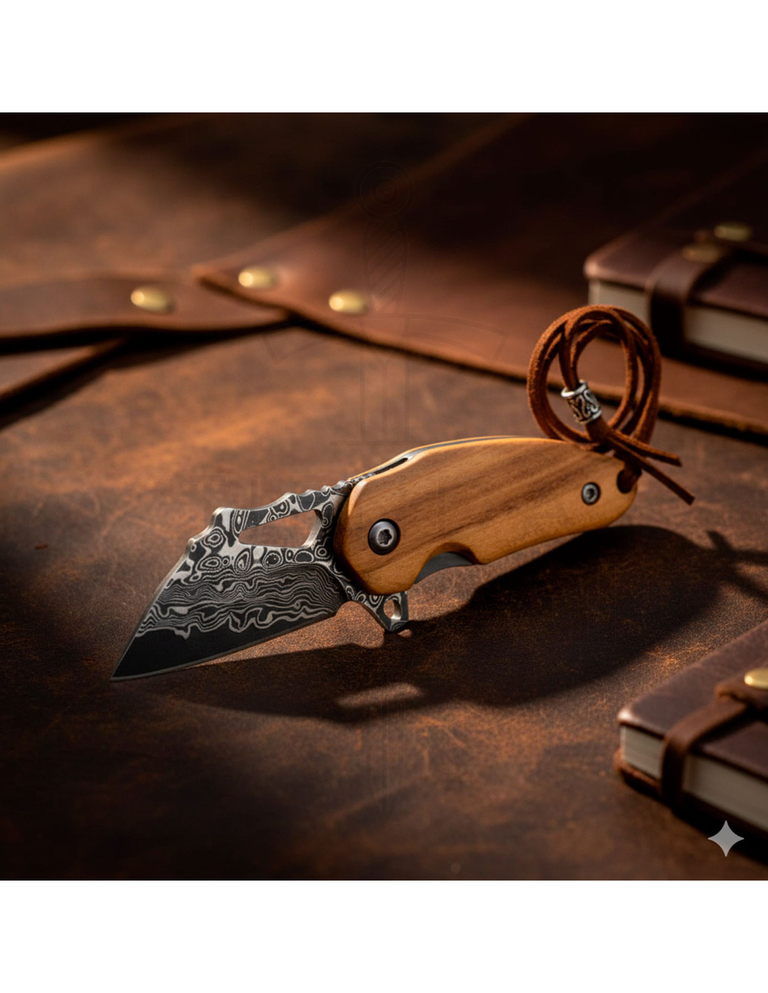 Ontdek perfectie in elk detail met dit elegante zakmes dat traditie en karakter combineert. Het damast stalen blad met 56 lagen biedt uitzonderlijke weerstand en een unieke afwerking die bewondering zal oogsten bij elke gelegenheid. De kromming van het blad en het ontwerp met een opvallend patroon maken het niet alleen praktisch, maar ook een echt kunstobject voor verzamelaars en liefhebbers van kwaliteitsgereedschap.