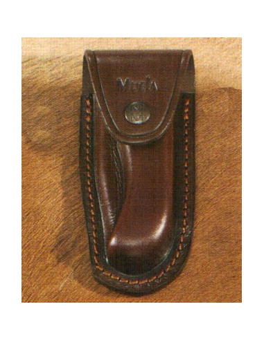 Details zoals de twee metalen inlegstukken in het handvat voegen niet alleen visueel karakter toe, maar helpen ook de richting van het mes waar te nemen tijdens het hanteren. De nylon hoes draagt bij aan het transport, beschermt het lemmet zonder onnodig gewicht toe te voegen, klaar om in een rugzak of aan een riem te worden opgeborgen.
