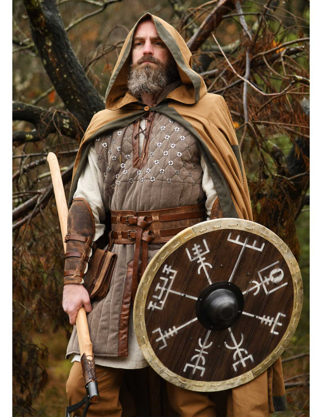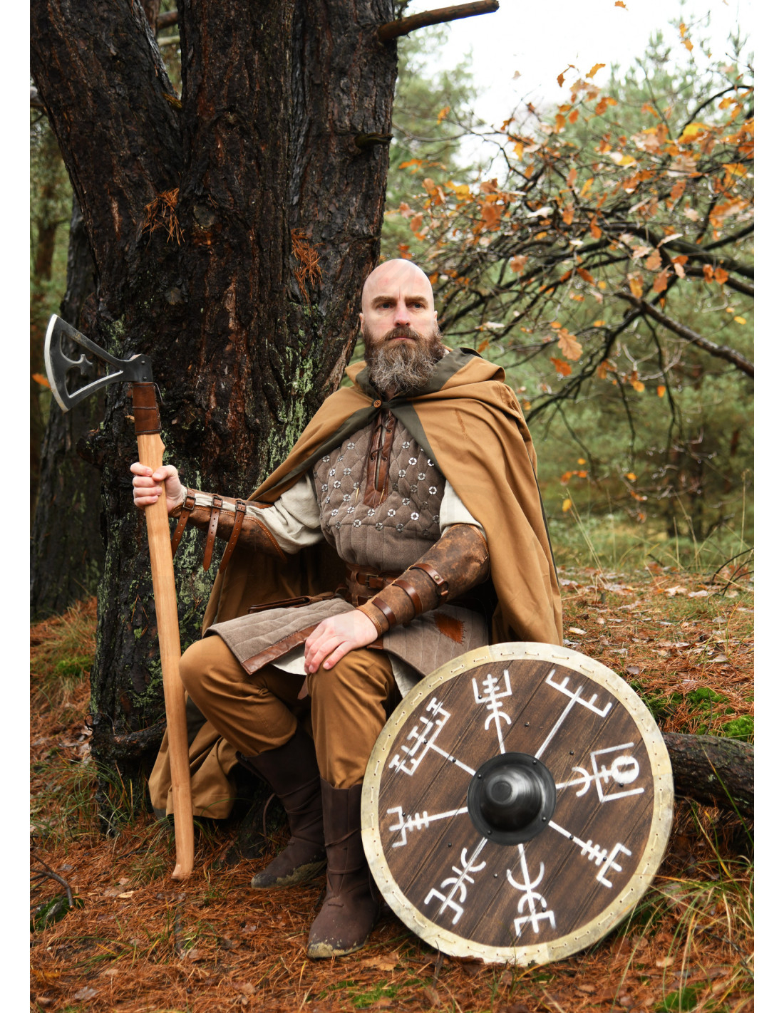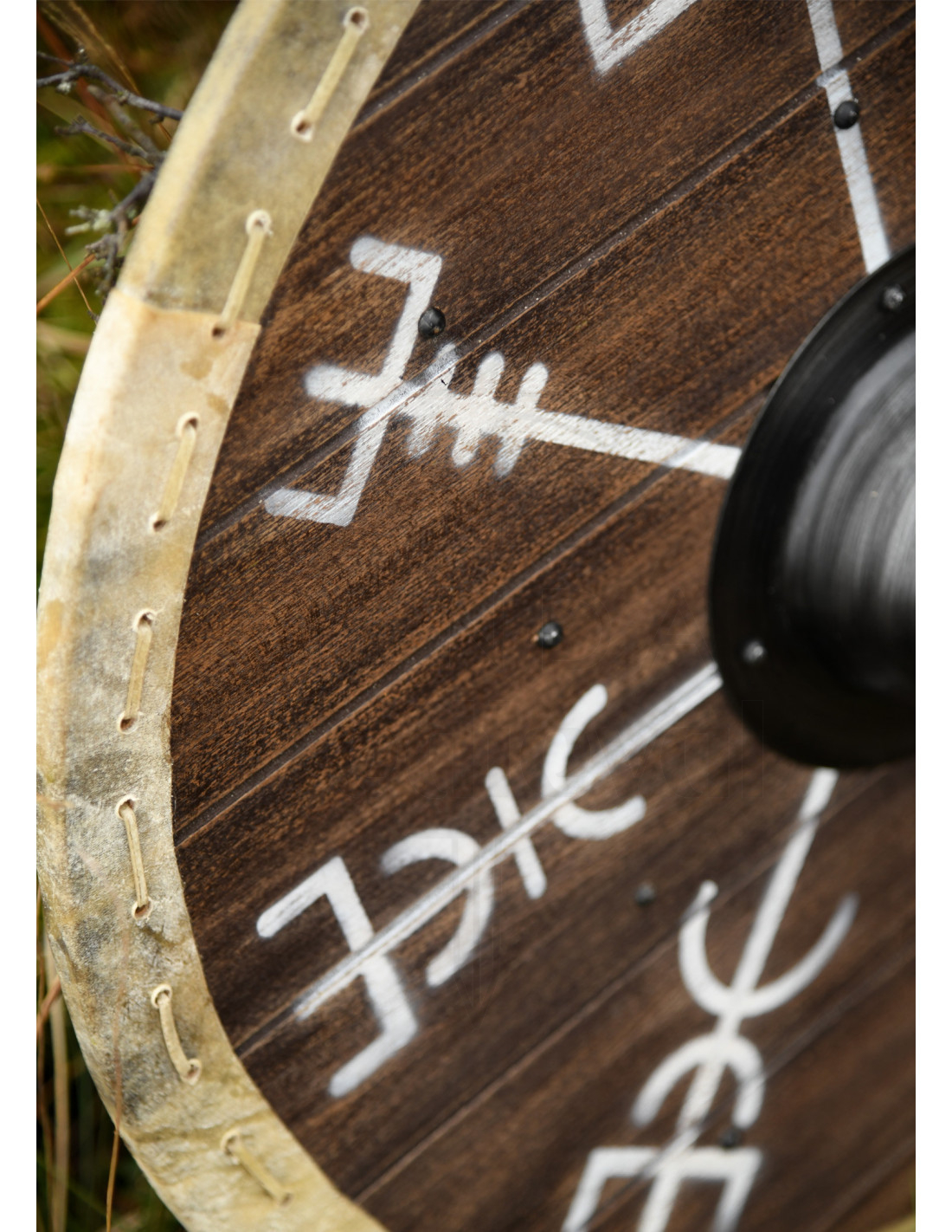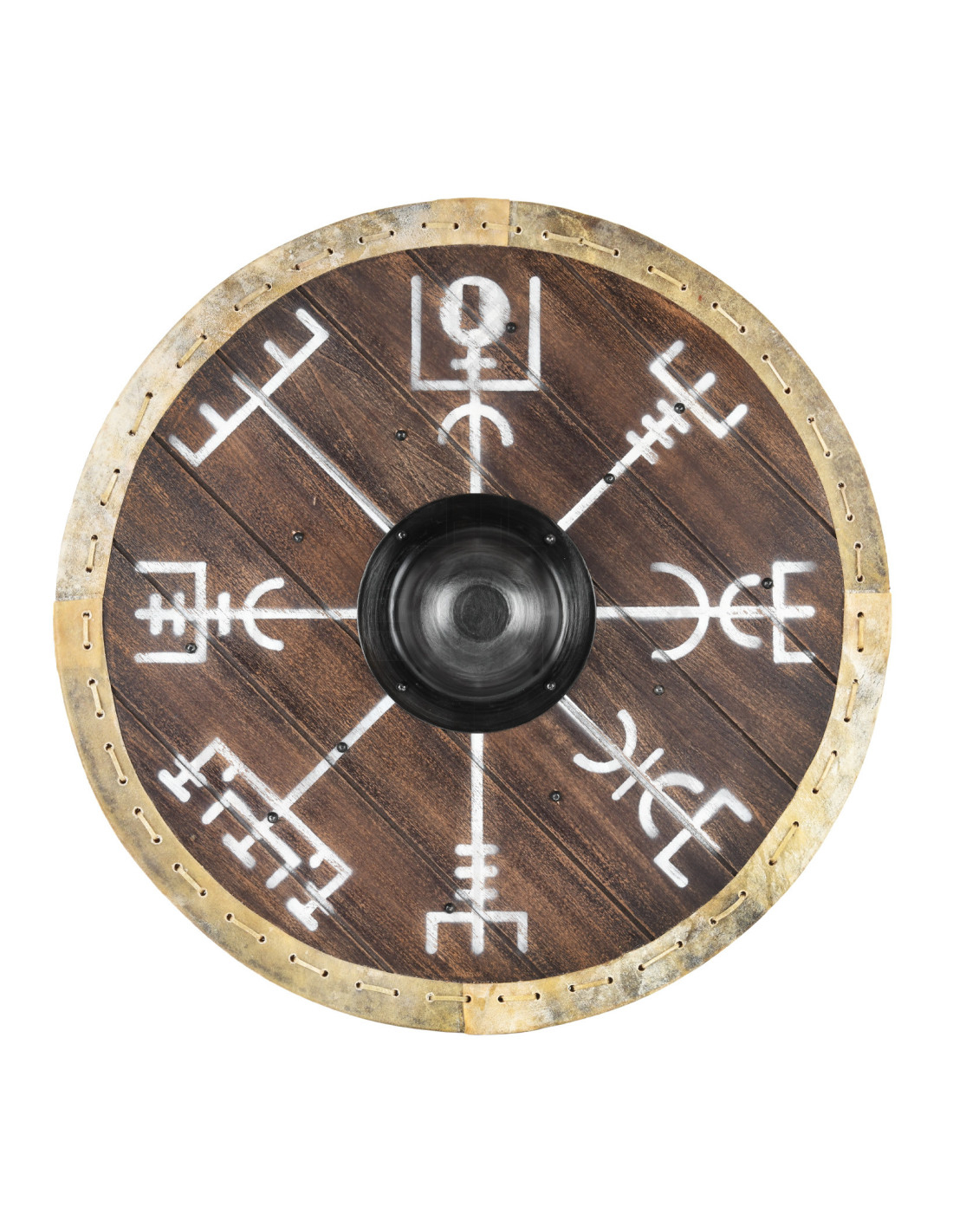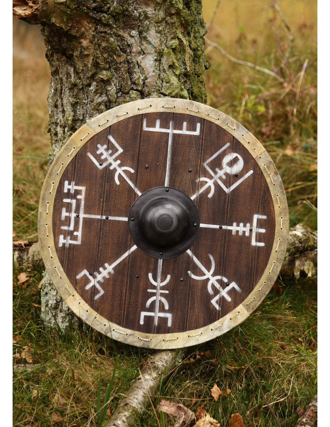 Met een indrukwekkende precisie vervaardigd, is dit schild van 60 cm versierd met de Vegvísir, een oud IJslands symbool dat bekend staat als de "navigator". Er wordt gezegd dat als je deze sigil draagt, je nooit je weg zult verliezen, zelfs niet in de felste stormen. Stel je de kracht voor die je zult voelen als je het draagt, of het nu is tijdens LARP-evenementen, historische reconstructies of als een indrukwekkend decoratief stuk in je huis.