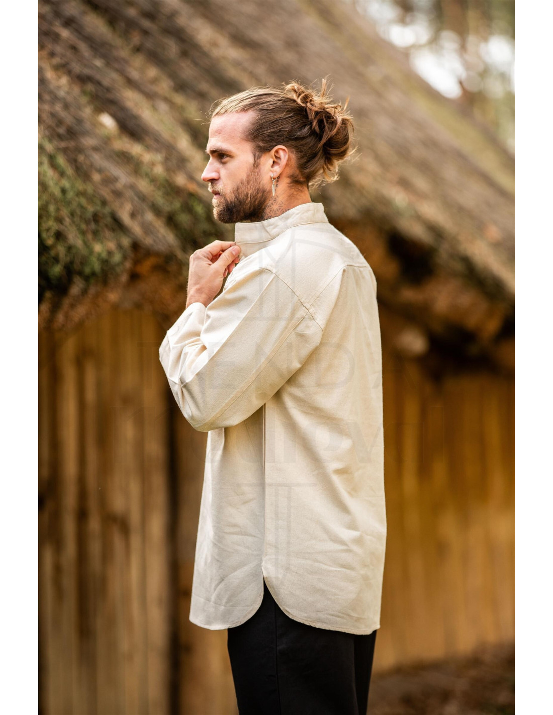 Het middeleeuws veteroverhemd Ansbert is gemaakt van 100% katoen, waardoor het zacht aanvoelt en zeer comfortabel is om te dragen. De natuurlijke witte kleur geeft het een vleugje elegantie en authenticiteit, perfect om je middeleeuwse outfit compleet te maken.