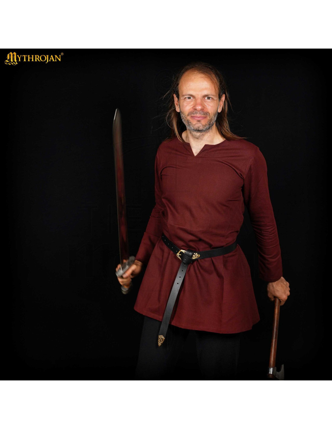 Klaar om eruit te zien als een echte middeleeuwse ridder of avonturier? Deze katoenen tuniek in bruin, model Raider, is jouw perfecte metgezel voor elke epische gelegenheid, of het nu gaat om reenactment evenementen, cosplay, themabruiloften of SCA- en LARP-kampioenschappen. Gemaakt van stevig 100% katoen, combineert het duurzaamheid en comfort in één pakket, ideaal om de meest intense gevechten aan te gaan of memorabele momenten te delen aan de tafel van de meadhall.