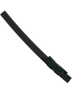Het lemmet is gedifferentieerd getemperd met een kleicoating. Op de snijkant bereikt het een hardheid van 60 HRC, terwijl het op de rug van het blad ongeveer 40 HRC is. Het handvat is omwikkeld met groene zijde in een traditionele maki-stijl in katate, versterkt met echte pijlstaartroggenhuid.
