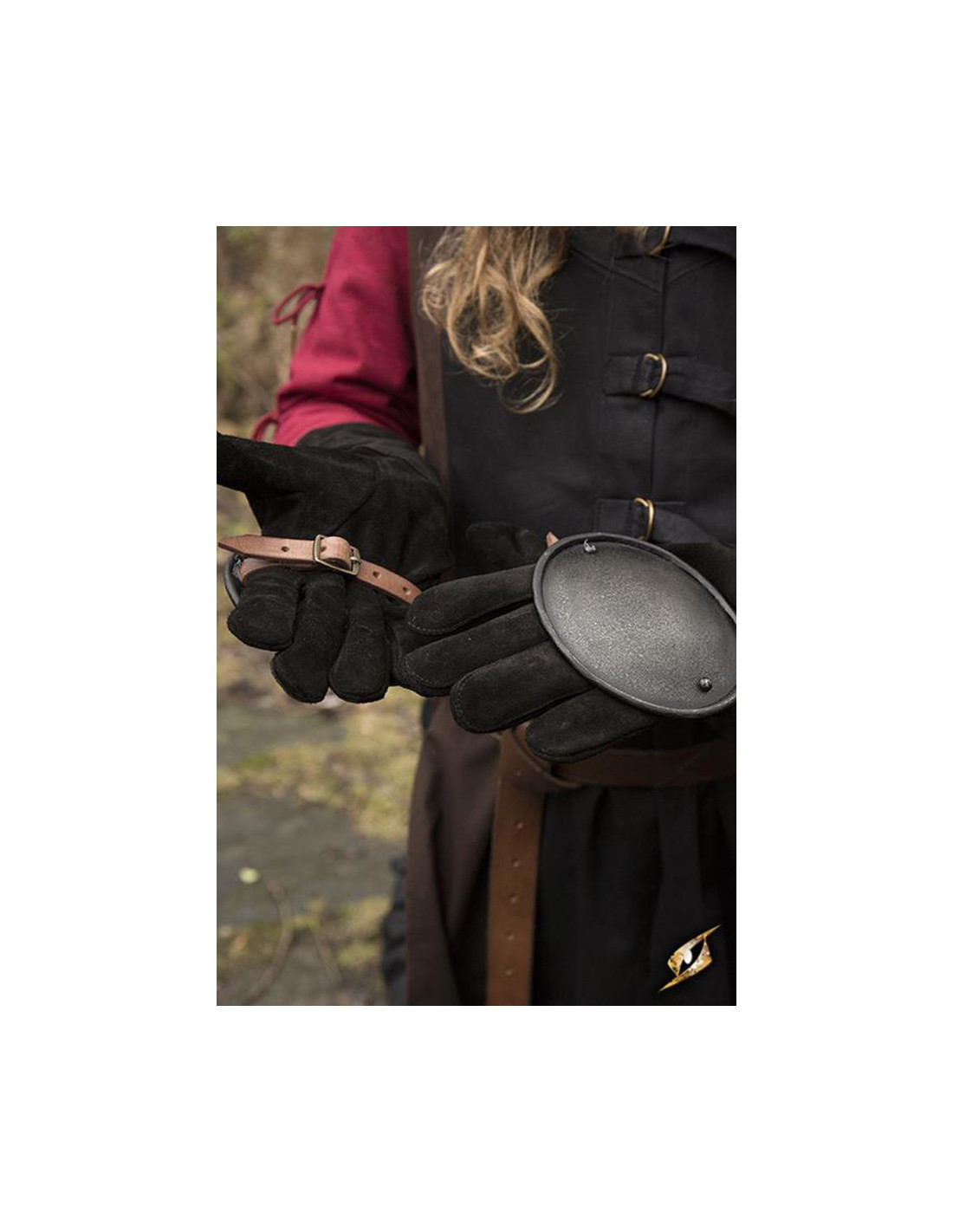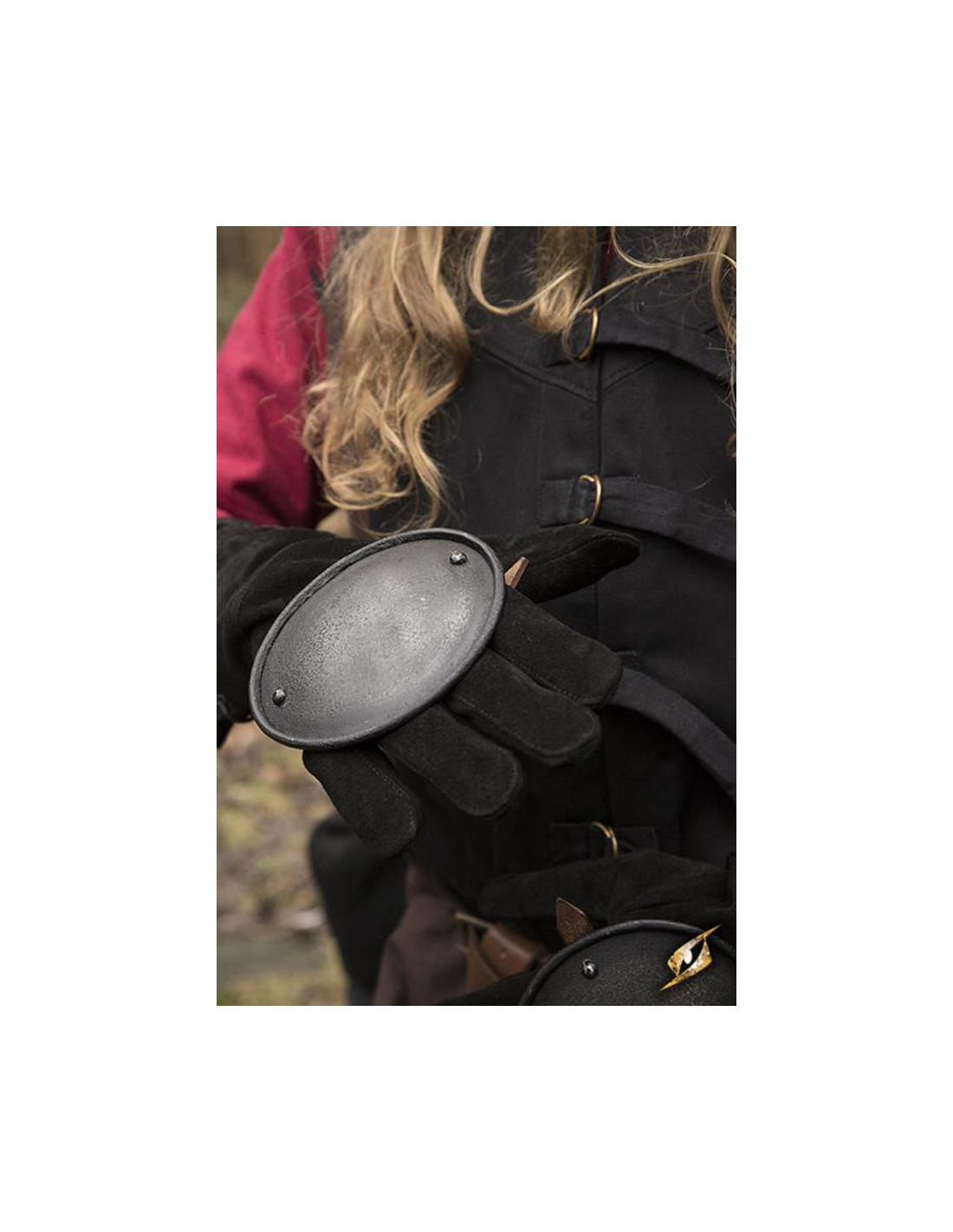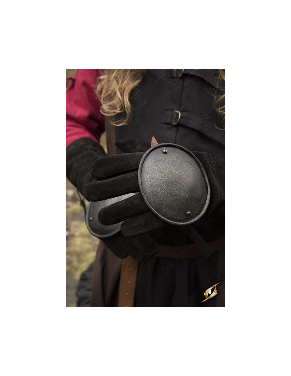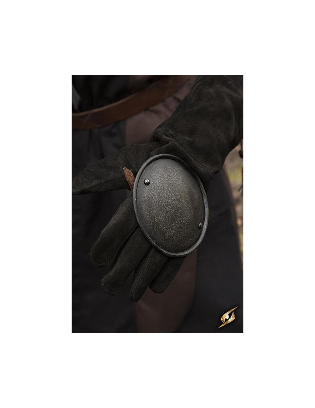 Gemaakt van hoogwaardig zacht staal, garandeert deze beschermer optimale bescherming voor je handen tijdens je middeleeuwse veldslagen. De donkere afwerking geeft het een authentieke en opvallende uitstraling, waarmee je je onderscheidt van je medestrijders.