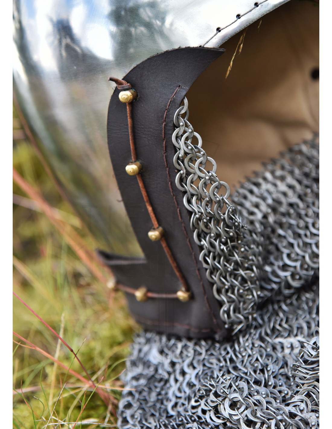 Ben je op zoek naar een wieg die stijl en functionaliteit combineert? Dan mag je onze Battle-Ready Basin met ingebouwde beul niet missen. Deze indrukwekkende helm werd in het begin van de 14e eeuw ontwikkeld op basis van de populaire Cervelliere-helm en bleef tot in de 15e eeuw in de mode.
