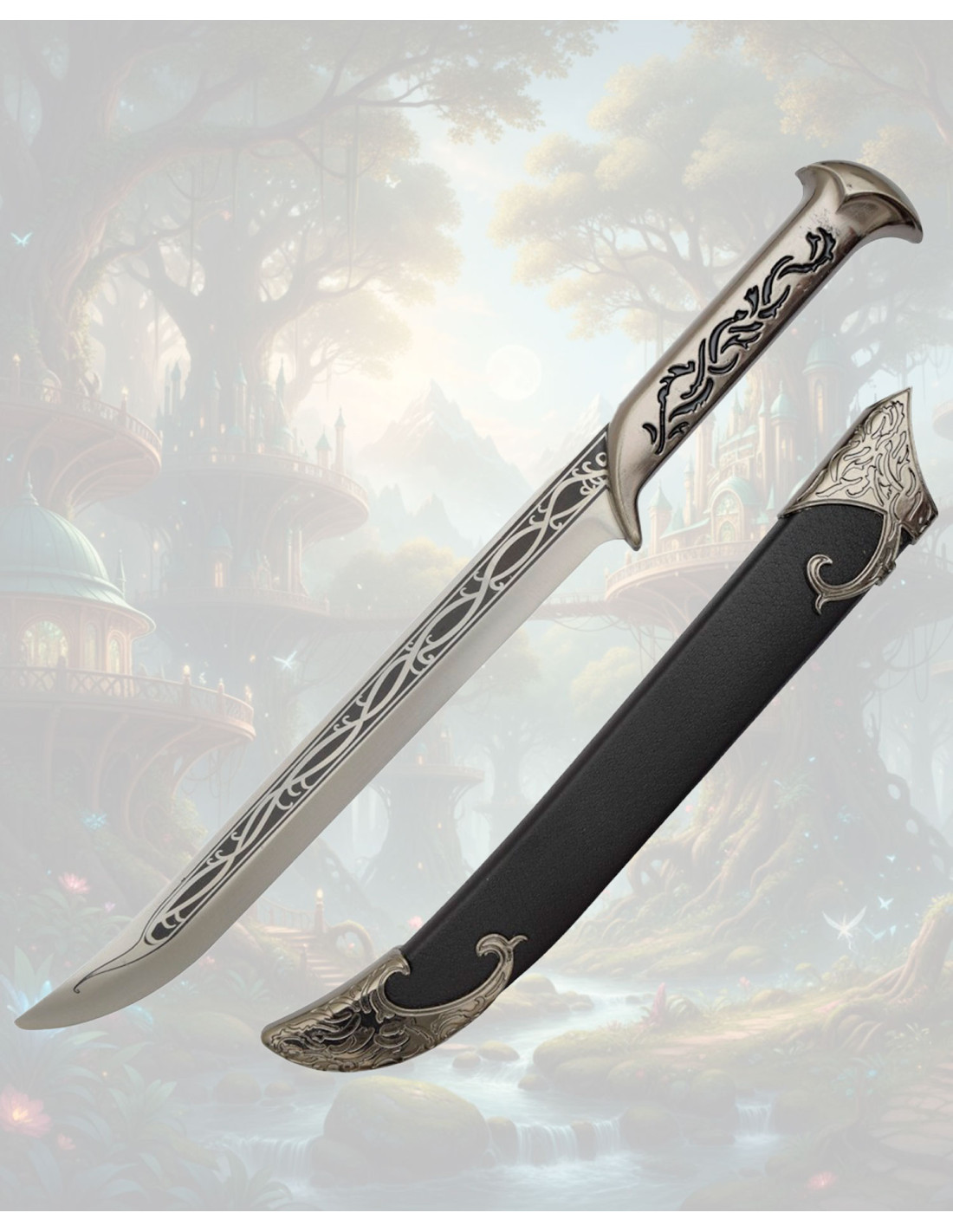Een optie afgestemd op diegenen die een replica willen met een zorgvuldige esthetiek en een narratief karakter, ideaal als je het decoratieve korte zwaard van Thranduil - De Hobbit wilt kopen en een stuk met aanwezigheid en detail aan je collectie wilt toevoegen.