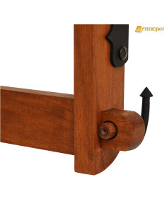 Maak je klaar om trots je zwaarden tentoon te stellen met onze houten standaard met twee niveaus en haken! Gemaakt van massief hout van de hoogste kwaliteit en traditioneel vakmanschap, zorgt deze standaard voor duurzaamheid en langdurige schoonheid. Vergeet nephouten standaards van lage kwaliteit, we hebben het hier over echt massief hout!