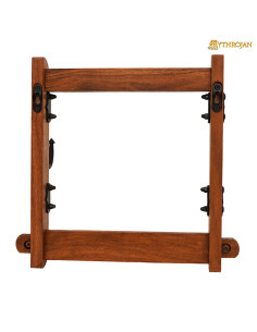Met zijn stevige ontwerp en schroeven aan elke kant biedt onze standaard een solide en stabiele houder voor je zwaarden! Bovendien kunt u door het perfecte formaat al uw zwaarden optimaal tentoonstellen, waardoor een sfeer van authenticiteit en elegantie in uw huis ontstaat. Wat is een betere manier om vrienden te vermaken voor een feestelijk banket of een gedenkwaardige bruiloft dan omringd door je favoriete zwaarden, als verre echo's van een verloren verleden. Verhoog je zwaardpresentatie met stijl en kwaliteit met onze Mythrojaanse houten standaard. Koop de jouwe en laat je zwaarden hun eigen verhaal vertellen!