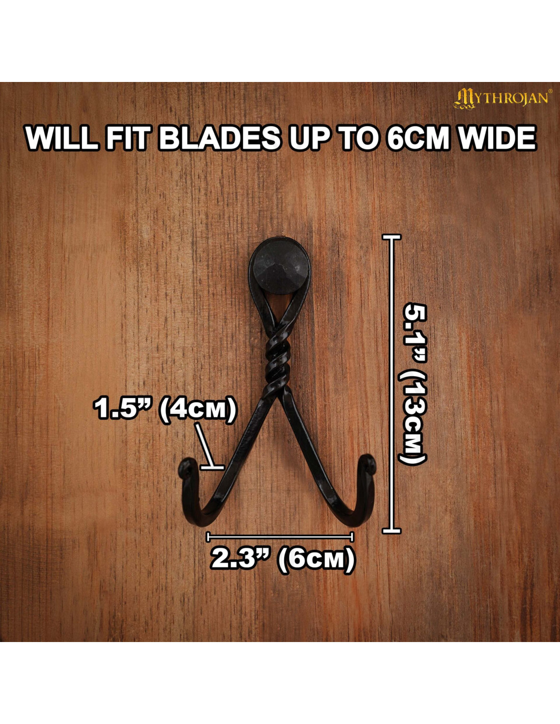 De installatie is eenvoudig: je hoeft alleen de beugel aan de muur te schroeven of te spijkeren, inclusief het benodigde bevestigingsmateriaal, en klaar om je zwaarden, messen of andere decoratieve objecten veilig en aantrekkelijk te tonen. Deze Mythrojan-beugel valt niet alleen op door zijn functionaliteit, maar ook door zijn onderscheidende karakter, ideaal om een sfeer vol geschiedenis en vakmanschap te creëren.