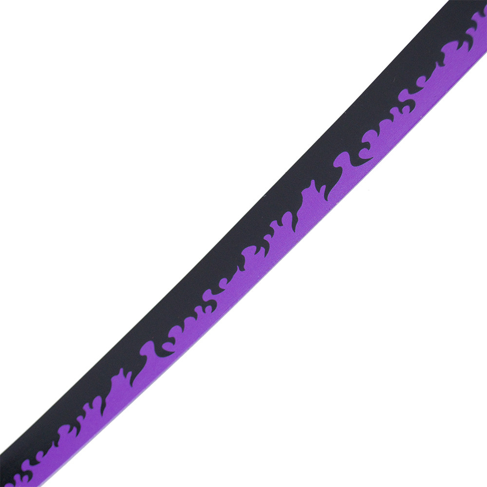 Het lemmet heeft een zwarte snede met paarse details, die de kenmerkende kleur van het zwaard uit de serie nabootst. Het handvat is met paarse koord omwikkeld en de schede heeft bijpassende gouden details, wat het originele ontwerp weerspiegelt en authenticiteit en een opvallende afwerking toevoegt die opvalt in elke verzameling.