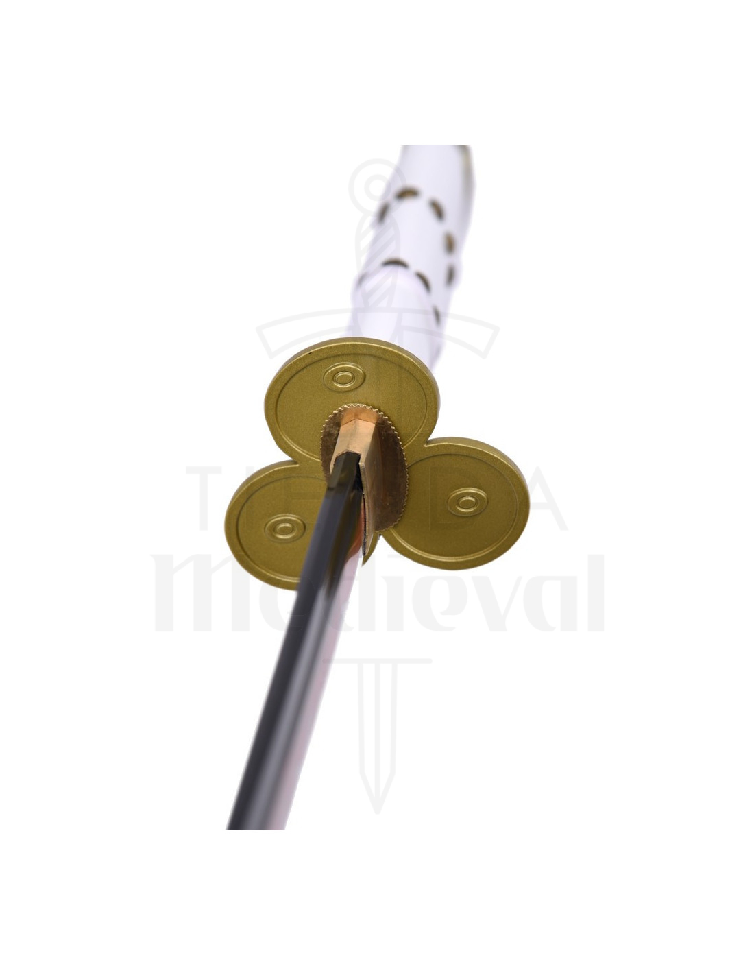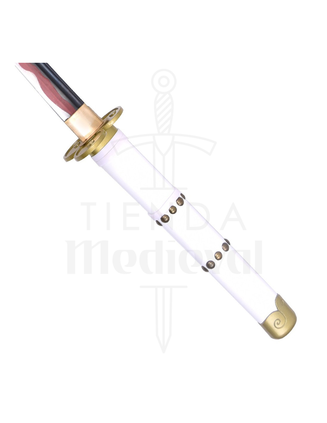 Koop nu dit decoratieve zwaard, ontworpen om er spectaculair uit te zien in elke hoek, en trek de aandacht met zijn esthetiek geïnspireerd door een van de meest charismatische personages van One Piece.
