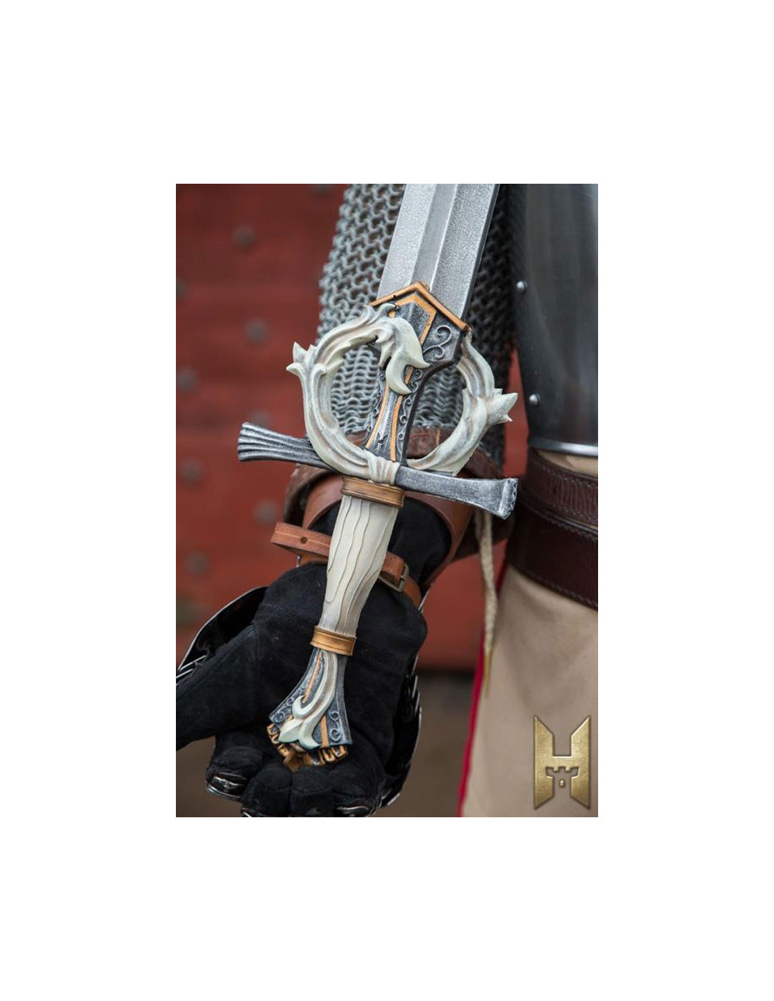 Met een gewicht van slechts 440 gram is dit zwaard gemakkelijk te hanteren en kunt u snelle en nauwkeurige bewegingen maken. Bovendien geeft de ivoorkleur hem een elegante en gedistingeerde toets, waardoor het een uniek stuk is dat niet onopgemerkt zal blijven tijdens uw cosplay-evenementen, rollenspellen of theatervoorstellingen.